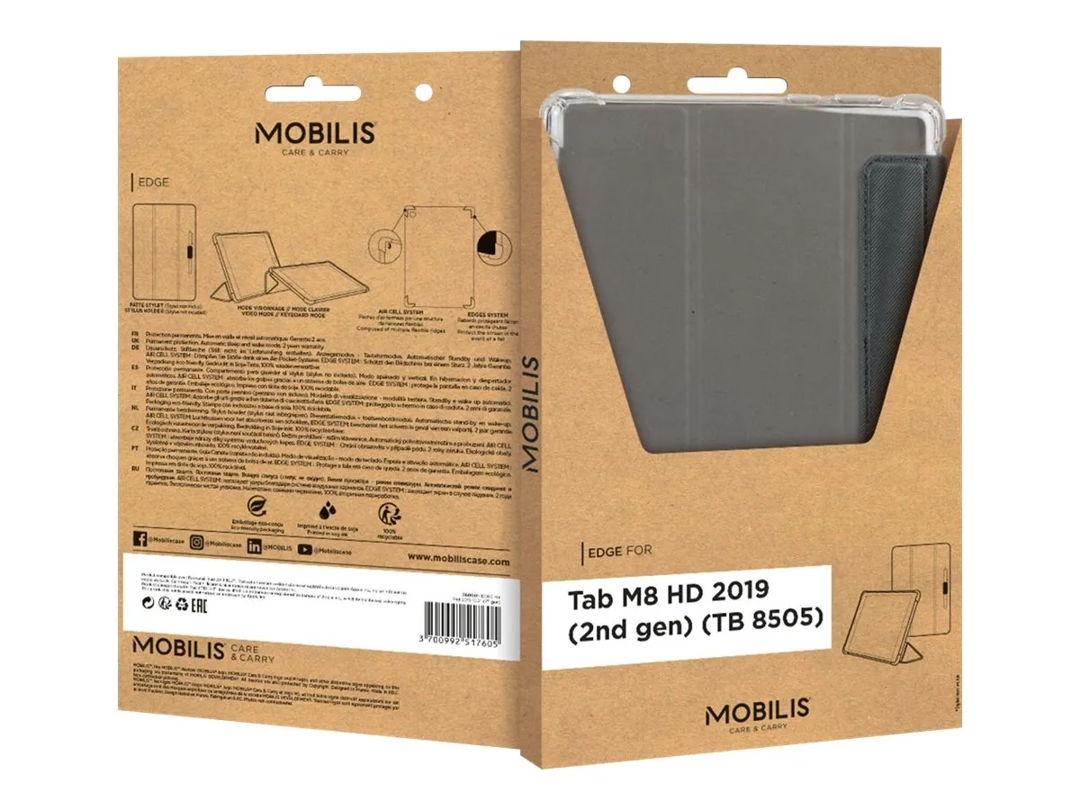 Mobilis EDGE - Étui à rabat pour tablette - noir, transparent - pour Lenovo Tab M8 HD (2nd Gen) ZA5G, ZA5H, ZA63