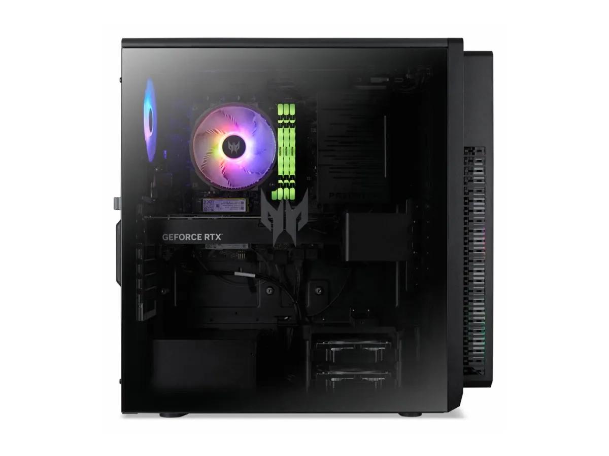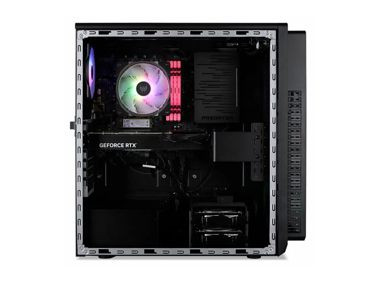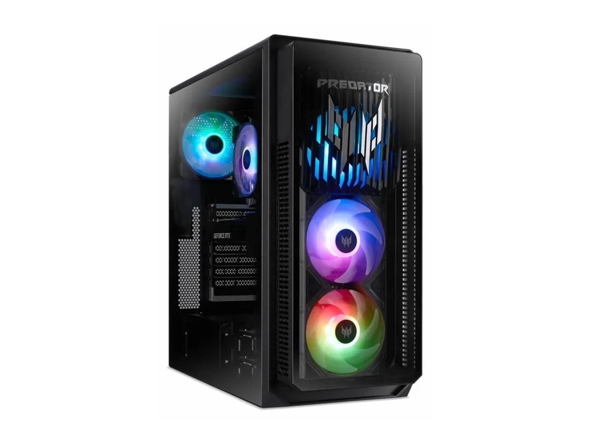 L'Acer Predator Orion 5000 PO5-660 est conçu pour ceux qui recherchent des expériences de jeu de haute performance. Avec un processeur Intel Core Ultra 7 qui comporte 20 cœurs et une vitesse turbo maximale de 5,3 GHz, cet ordinateur personnel peut gérer facilement des tâches exigeantes. Équipé de 32 Go de DDR5 SDRAM, les utilisateurs peuvent s'attendre à un multitâche fluide et à des sessions de jeu sans faille. L'intégration de la carte graphique NVIDIA GeForce RTX garantit des graphismes époustouflants et une réactivité exceptionnelle pour les jeux et les applications multimédias. Outre ses performances puissantes, le système dispose d'un large éventail de ports, dont USB 3.2 Gen 2, HDMI et DisplayPort, offrant de nombreuses options de connectivité pour les périphériques et les écrans. Le format tour offre suffisamment d'espace pour les futures mises à niveau, tandis que les capacités réseau avancées, notamment Wi-Fi 6 et Ethernet 2,5 Gigabit, offrent une connectivité en ligne fiable. Améliorez votre équipement de jeu avec l'Acer Predator Orion 5000 PO5-660, un système conçu pour la performance et la polyvalence.