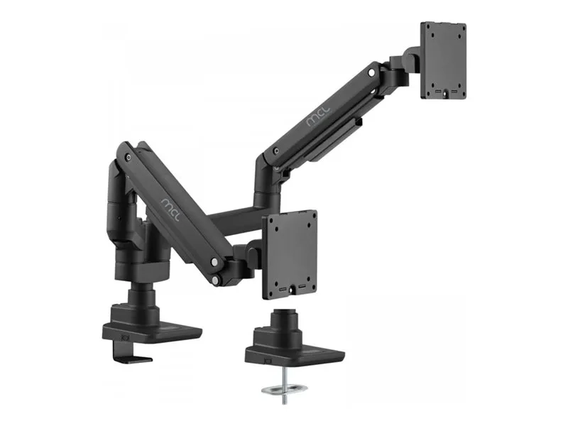 Le kit de montage MCL constitue une solution fiable pour le montage d'écrans LCD doubles d'une taille recommandée allant jusqu'à 35 pouces. Ce kit de montage sur bureau supporte jusqu'à 20 kg et comporte un bras de moniteur polyvalent qui permet une gamme complète de réglages. Les utilisateurs peuvent facilement incliner leur écran de -20° à 50°, l'orienter de -90° à 90° et le faire pivoter de 180° pour trouver l'angle de vue idéal. L'interface de montage pour écran plat est compatible avec différentes tailles VESA, notamment 100 x 100 mm, 75 x 75 mm et 116 x 116 mm, ce qui garantit la compatibilité avec une large gamme de moniteurs. Que ce soit pour un bureau à domicile ou un espace de travail professionnel, ce kit de montage améliore l'organisation et l'ergonomie en libérant un espace précieux sur le bureau.
