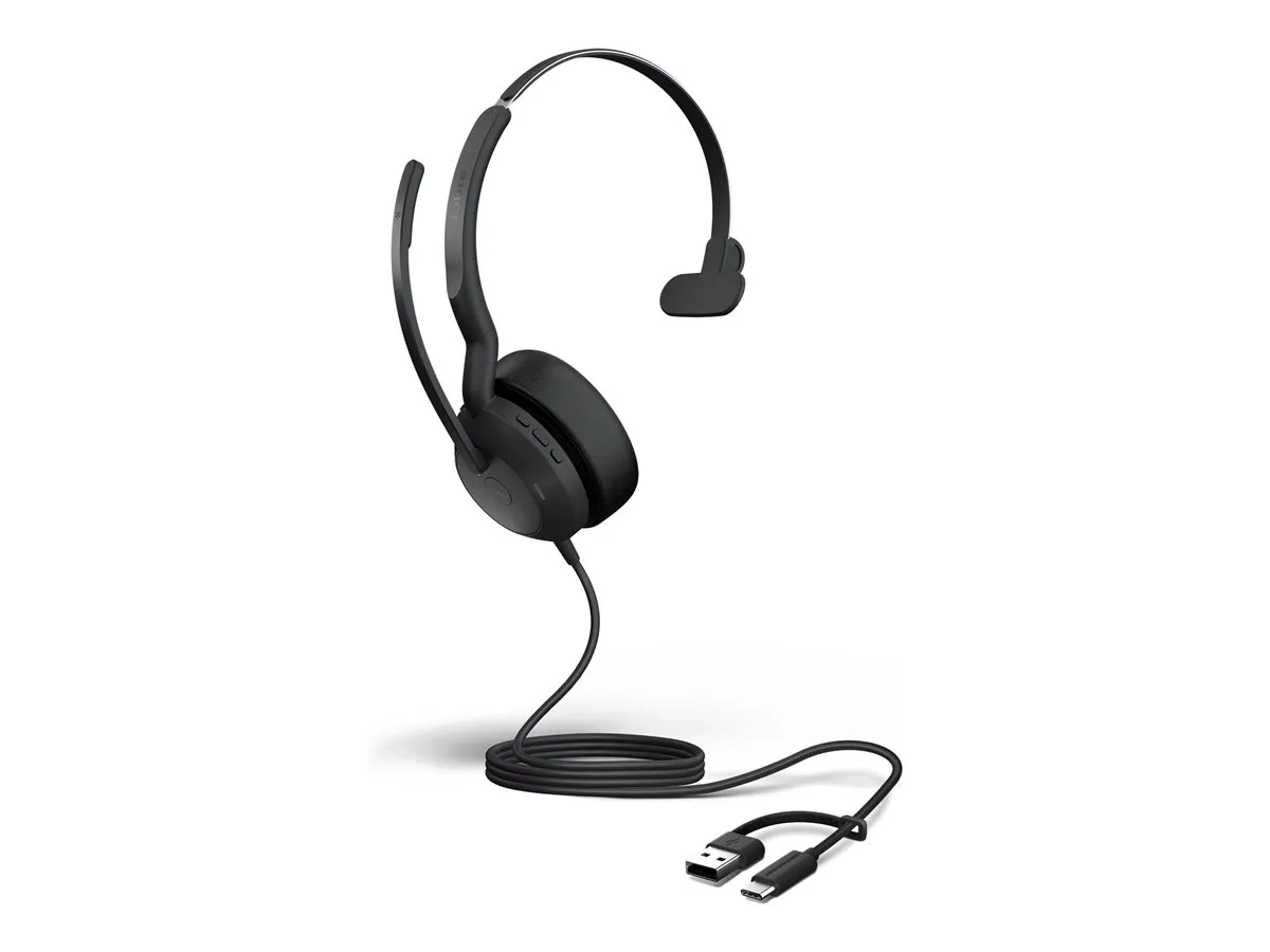 Jabra Evolve2 50 MS Mono - Micro-casque - sur-oreille - filaire - Suppresseur de bruit actif - USB-C, USB-A - Certifié pour Microsoft Teams