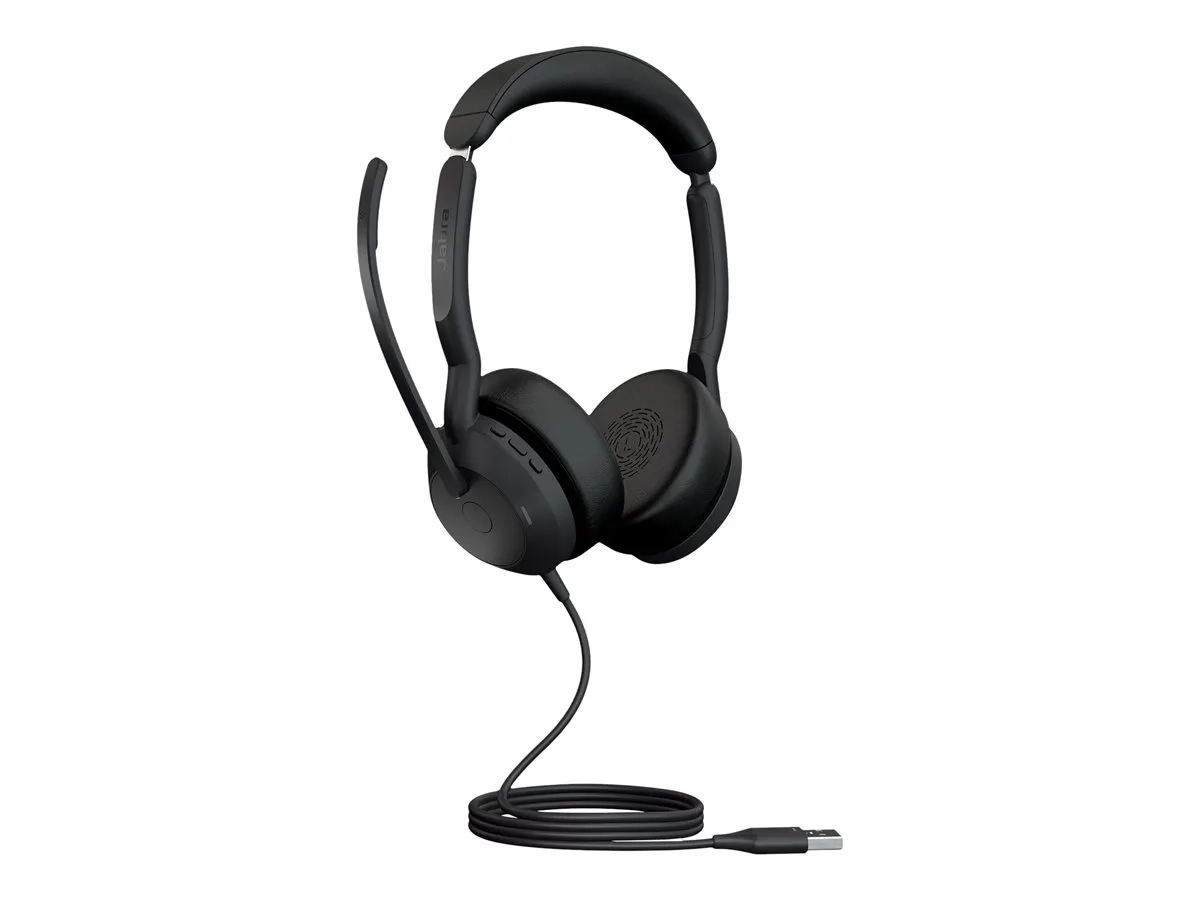 Jabra Evolve2 50 UC Stereo - Micro-casque - sur-oreille - filaire - Suppresseur de bruit actif - USB-A - noir - certifié Zoom, Cisco Webex Certified, Optimisé pour la CU, Optimisé pour Google Meet, Optimisé pour Microsoft Teams, Certifié Alcatel-Lucent, Certifié Avaya, Certifié Unify, Certifié Amazon Chime