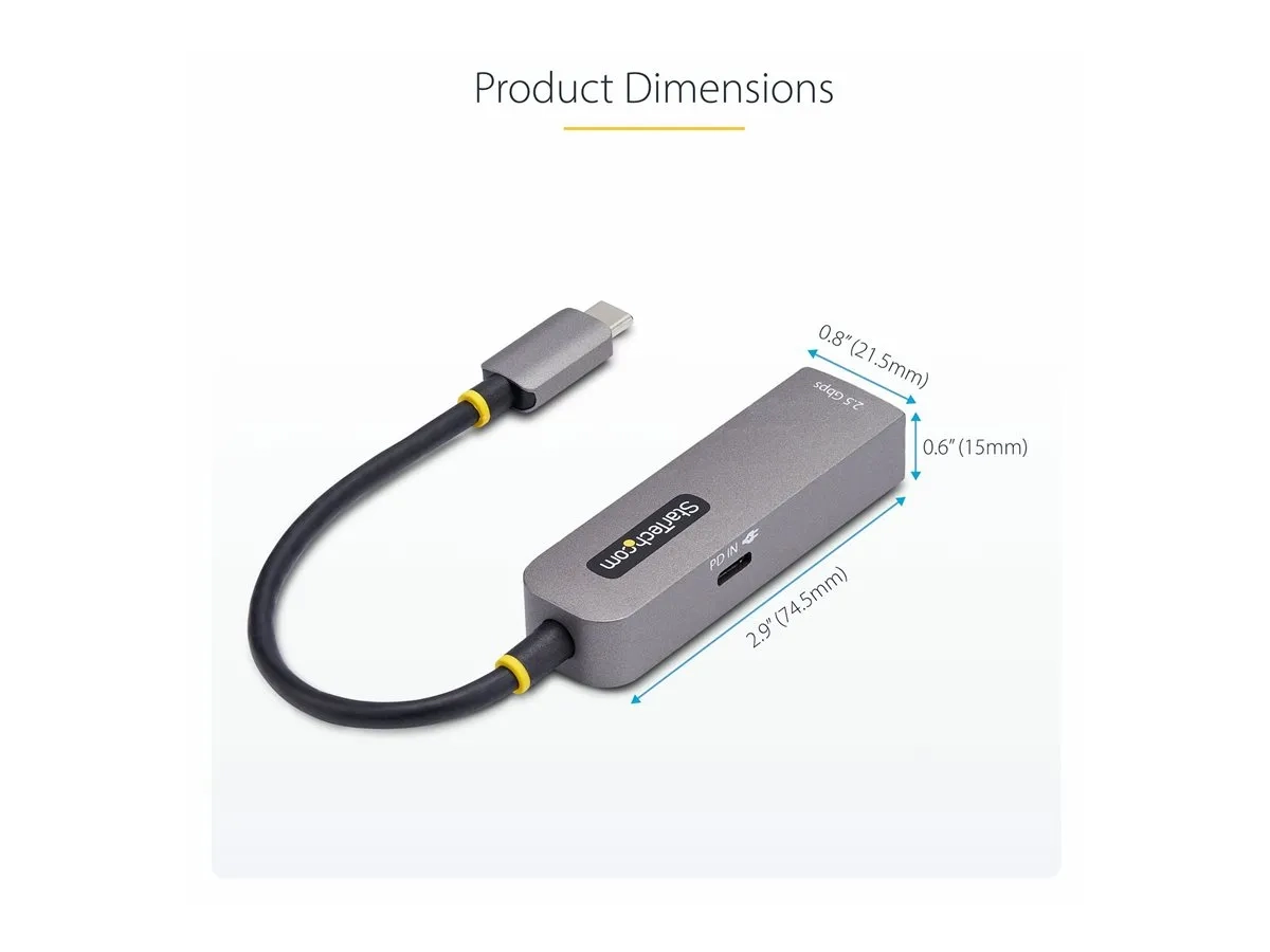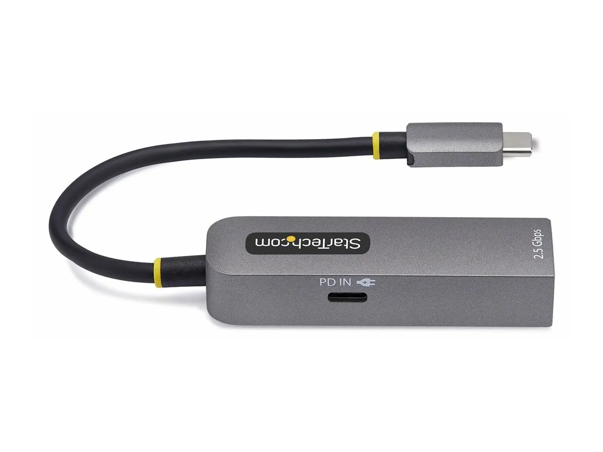 Ajoutez un accès réseau 2,5 Gbit/s aux ordinateurs portables, tablettes et iPhones équipés d'un port USB-C. Cet adaptateur USB-C vers Ethernet dispose d'un port de passage PD de 100 W qui vous permet de connecter un chargeur au même port USB-C, offrant ainsi une connexion Ethernet simultanée et une charge de l'appareil. Activez la connexion Ethernet sans perdre l'accès au port USB-C d'origine pour charger ou connecter des périphériques supplémentaires, ce qui est idéal pour les appareils avec un nombre limité de ports.