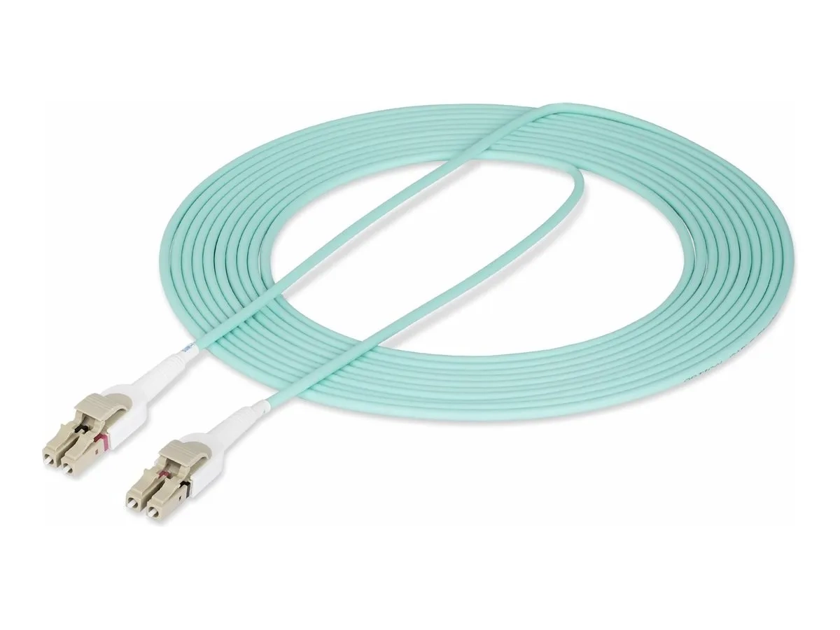 StarTech.com Câble Fibre Optique Commutable OM4 LC/LC de 5m, 50/125, 100G - Cordon de raccordement - LC/UPC multimode (M) pour LC/UPC multimode (M) - 5 m - 5 m - 2.9 mm - fibre optique - duplex - 50 / 125 microns - OM3/OM4 - sans halogène, débit de transfert de données jusqu'à 100 Gbps - turquoise