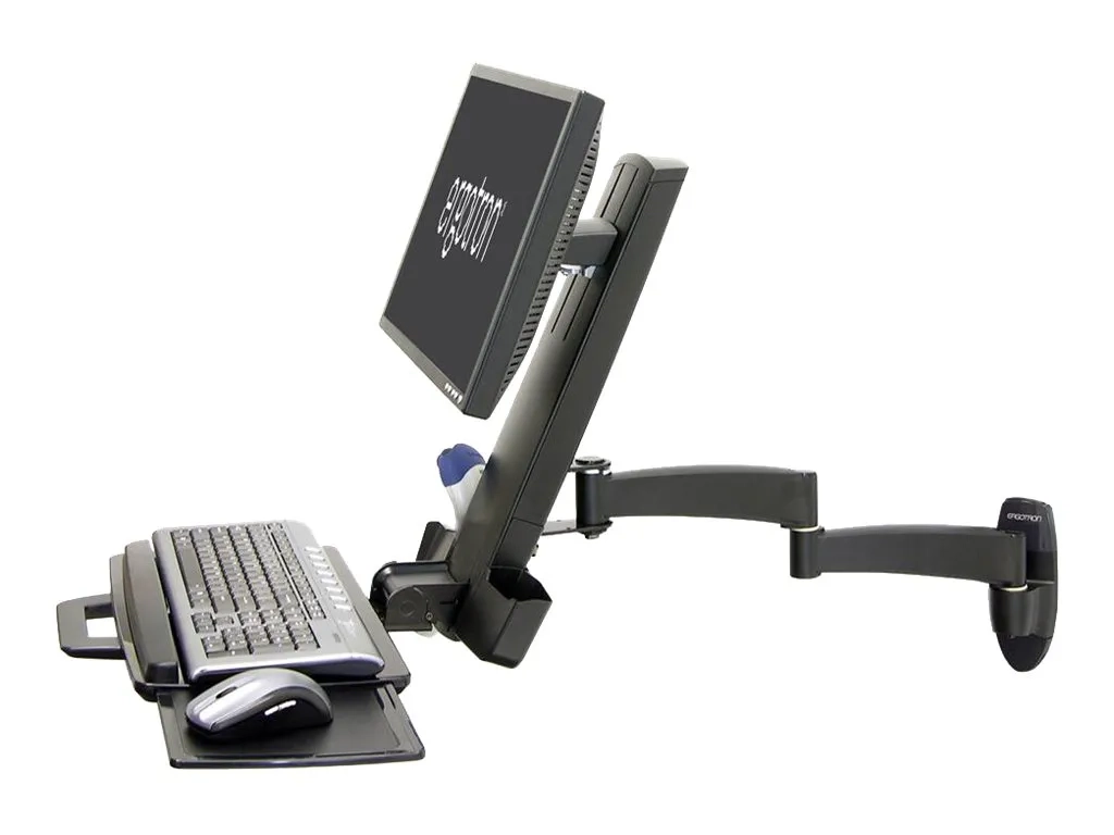 Ergotron 200 Series - Kit de montage (bras articulé, plateau de clavier avec plateau de souris gauche/droite, support de lecteur de codes à barres) - pour écran LCD/équipement PC - acier - noir - Taille d'écran : jusqu'à 24 pouces - montable sur mur