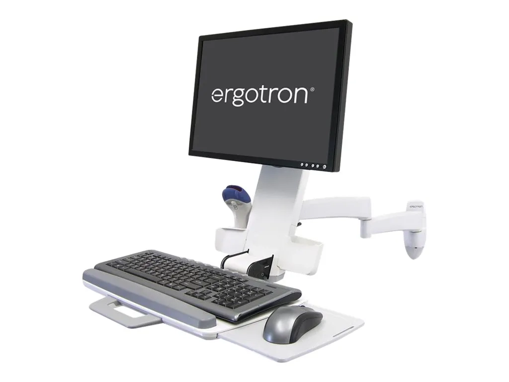 Ergotron 200 Series - Kit de montage (bras articulé, plateau de clavier avec plateau de souris gauche/droite, support de lecteur de codes à barres) - pour écran LCD/équipement PC - acier - blanc - Taille d'écran : jusqu'à 24 pouces - montable sur mur