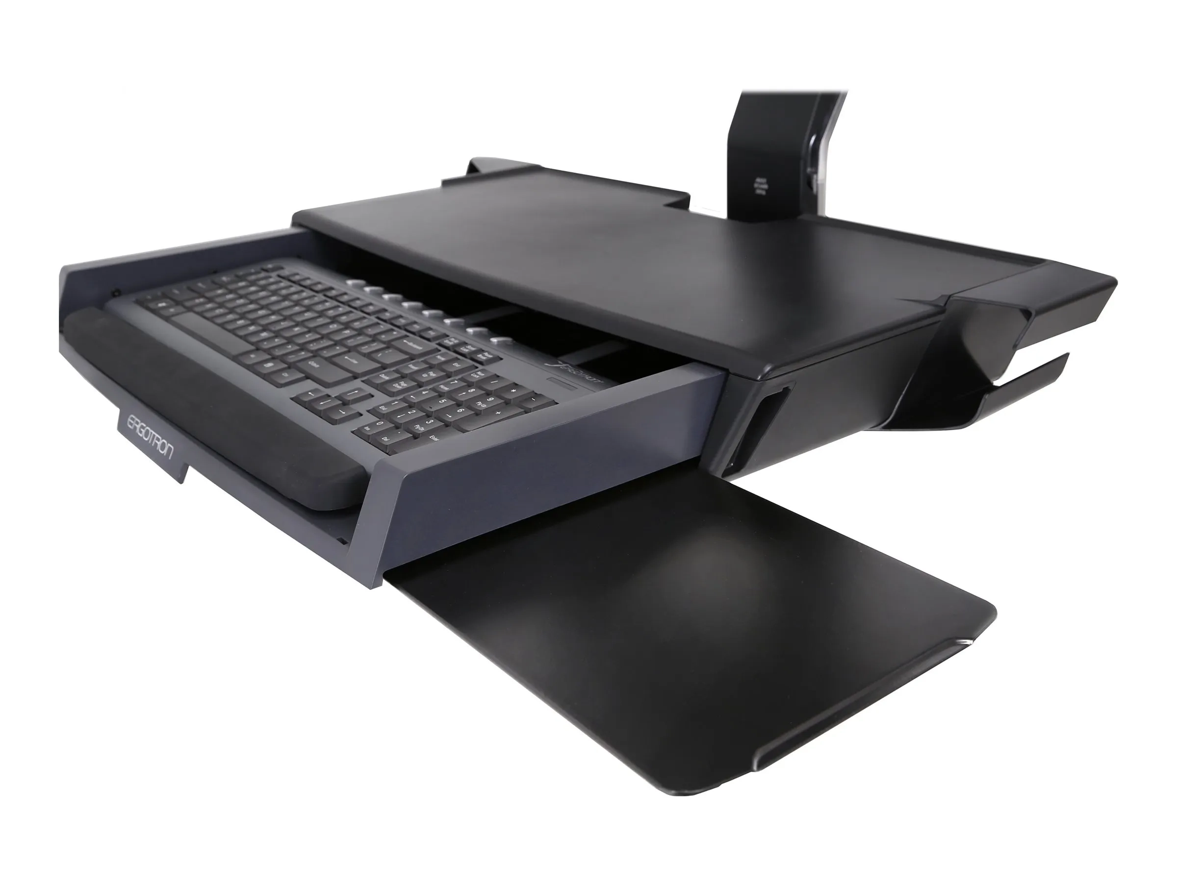 Ergotron - Kit de montage (support d'unité centrale, 2 protections de fixation, 2 chaînes de câble, fixation murale, étagère pour souris, repose-poignets, adaptateur VESA, tiroir à clavier, bras de moniteur réglable, rail mural 34 pouces, support pour scanner de code barres et souris)