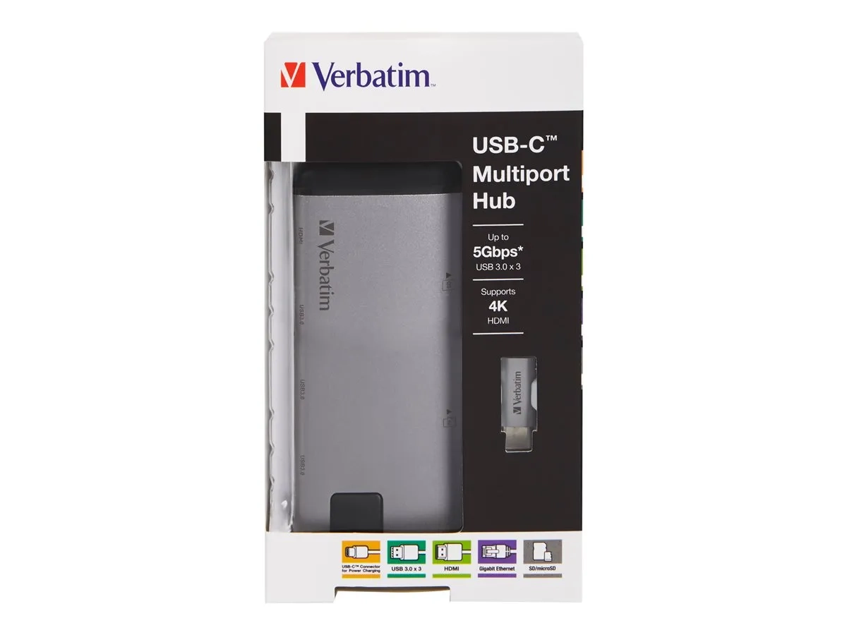 Ce hub multiport USB-C devient le partenaire idéal des ordinateurs portables ultraminces et des MacBooks récents. Les accessoires supplémentaires requièrent des ports dont les ordinateurs portables récents ne disposent pas. Ce hub multiport fournit un port de charge USB-C pour charger votre appareil pendant l'utilisation, un port HDMI pour brancher un écran HDMI ainsi que deux ports USB 3.0 pour brancher tous les accessoires nécessaires et un port Ethernet Gigabit pour se connecter aux réseaux câblés. Vous avez également besoin d'un lecteur de cartes? Sachez que ce hub est aussi muni d'un lecteur de cartes SD/microSD! Branchez le hub dans le port USB-C de votre ordinateur portable pour augmenter instantanément vos possibilités de travail.