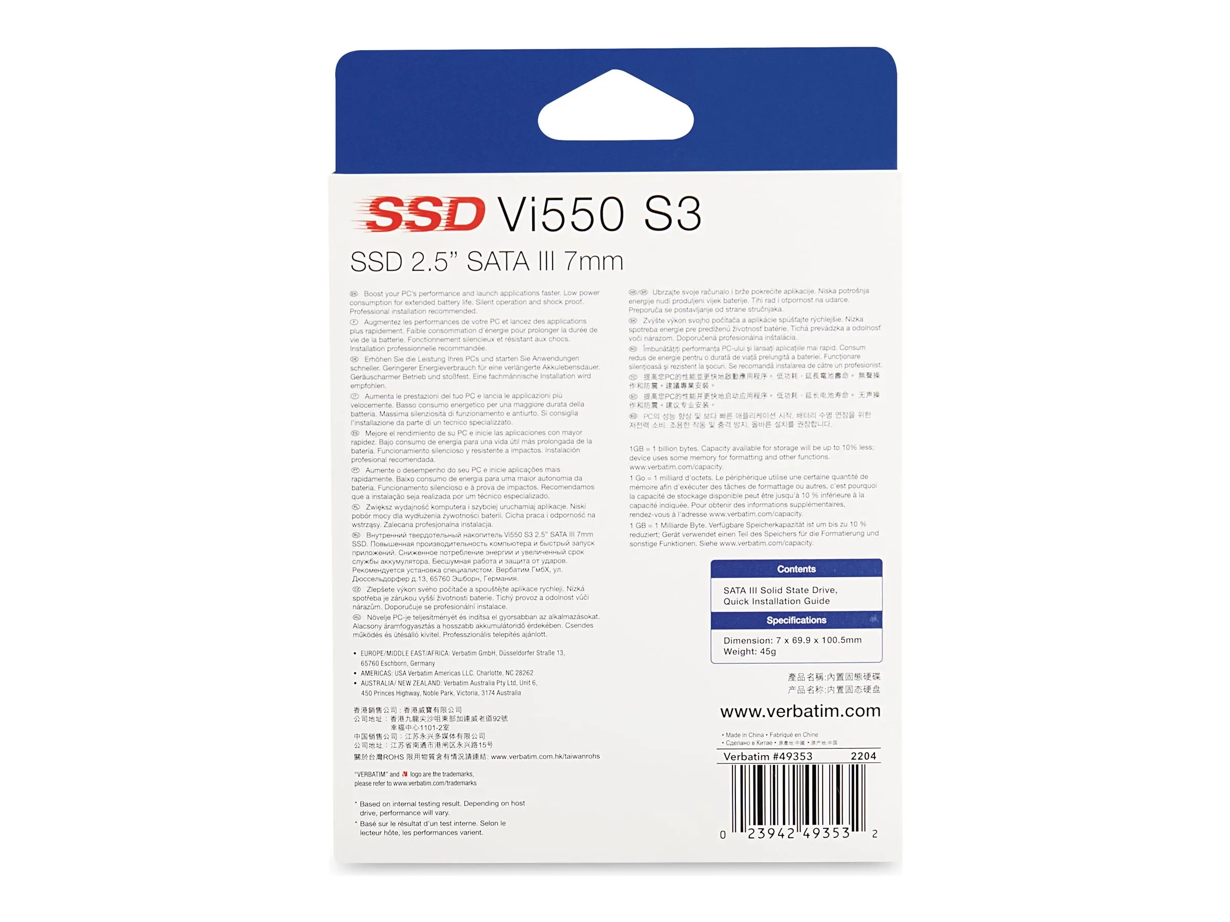 Fiche technique Verbatim Vi550 S3