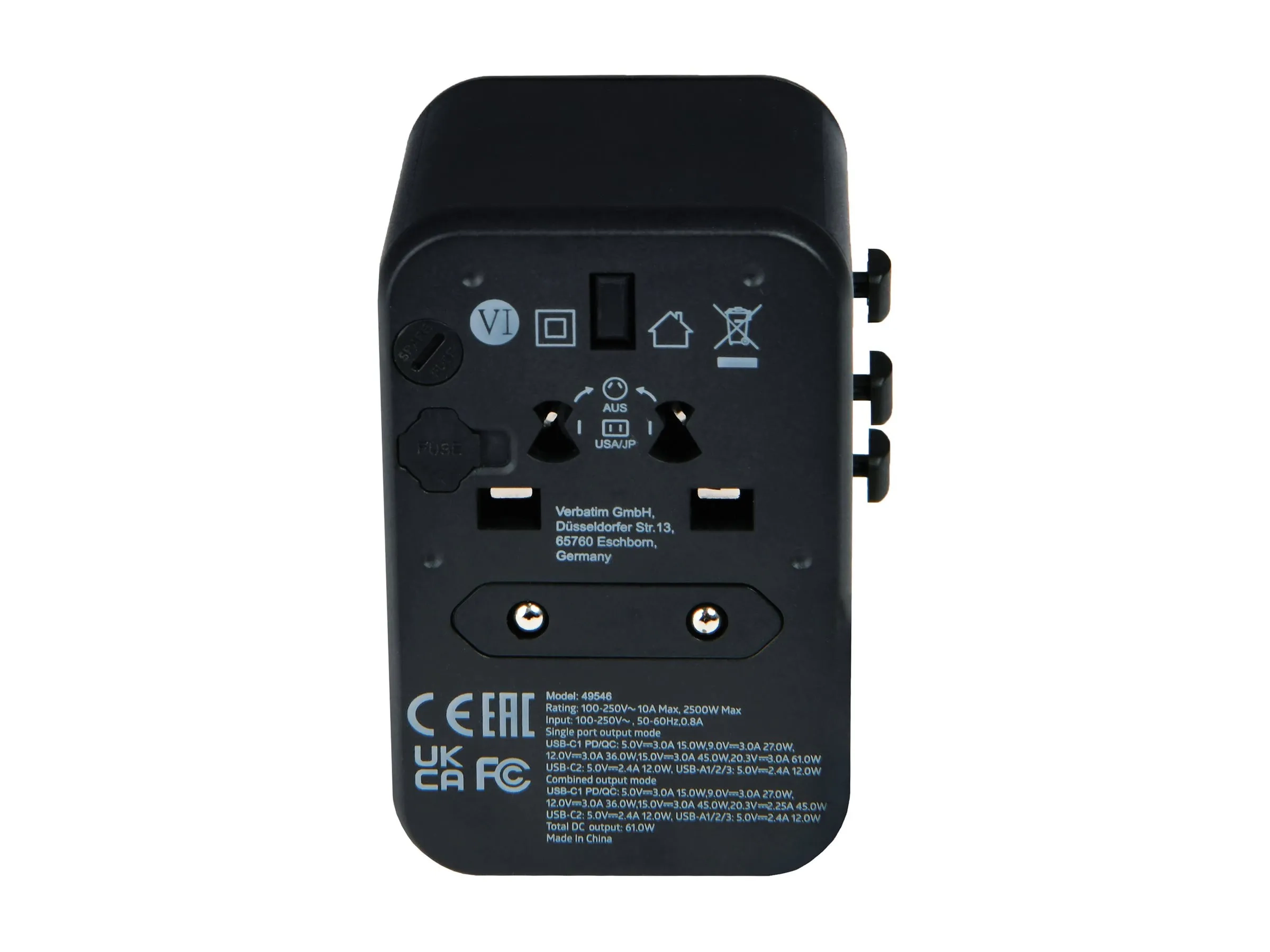L'adaptateur de voyage Verbatim UTA-04 est conçu pour ceux qui ont besoin d'une solution d'alimentation universelle. Capable de fournir plusieurs tensions, notamment 5 V, 9 V, 12 V, 15 V et 20,3 V, cet adaptateur garantit la compatibilité avec divers appareils tout en fournissant jusqu'à 61 W de puissance. Son design compact le rend facile à transporter, ce qui en fait le compagnon idéal pour les voyages. Équipé de cinq connecteurs de sortie, dont trois USB Type-A à 4 broches et deux USB-C à 24 broches, l'adaptateur peut charger jusqu'à six appareils simultanément, répondant ainsi à divers besoins de recharge. Des dispositifs de sécurité tels que des obturateurs de sécurité intégrés et un fusible remplaçable garantissent une tranquillité d'esprit lors de l'utilisation à l'intérieur, tandis que sa construction ignifuge assure une durabilité à long terme. La présence d'indicateurs LED permet aux utilisateurs de surveiller facilement l'état de l'alimentation.