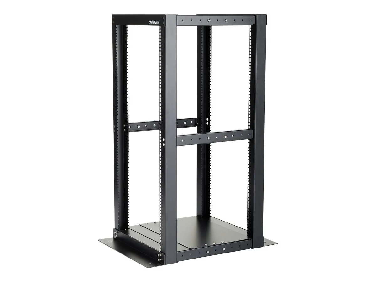 Le rack à cadre ouvert et à 4 montants 25U 4POSTRACK25 constitue un logement durable à l'air libre pour les serveurs et l'équipement réseau montés en rack. Ce produit est conforme à la norme TAA (US Federal Trade Agreements Act) en application aux États-Unis et homologué par le GSA (General Services Administration) aux États-Unis.