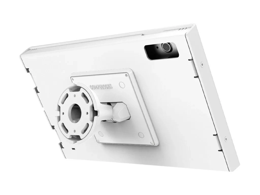 Compulocks iPad 10th-11th (A16) Gen Swell Enclosure Bow Tilting Wall Mount White - Kit de montage (enceinte, support mural basculant) - caméra et capteurs avant/arrière exposés - pour tablette - aluminium - blanc - Taille d'écran : 10.9" - pour Apple 10.9-inch iPad Wi-Fi + Cellular; 10.9-inch iPad Air Wi-Fi, Wi-Fi + Cellular