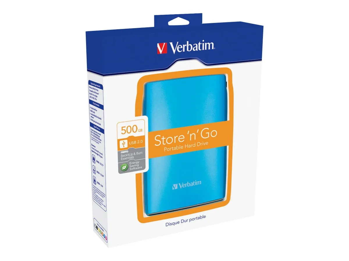 Verbatim Store 'n' Go Portable - Disque dur - 500 Go - externe (portable) - USB 2.0 - 5400 tours/min - bleu des Caraïbes