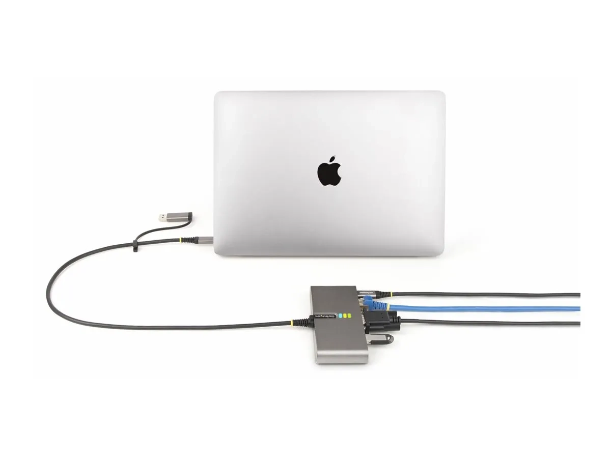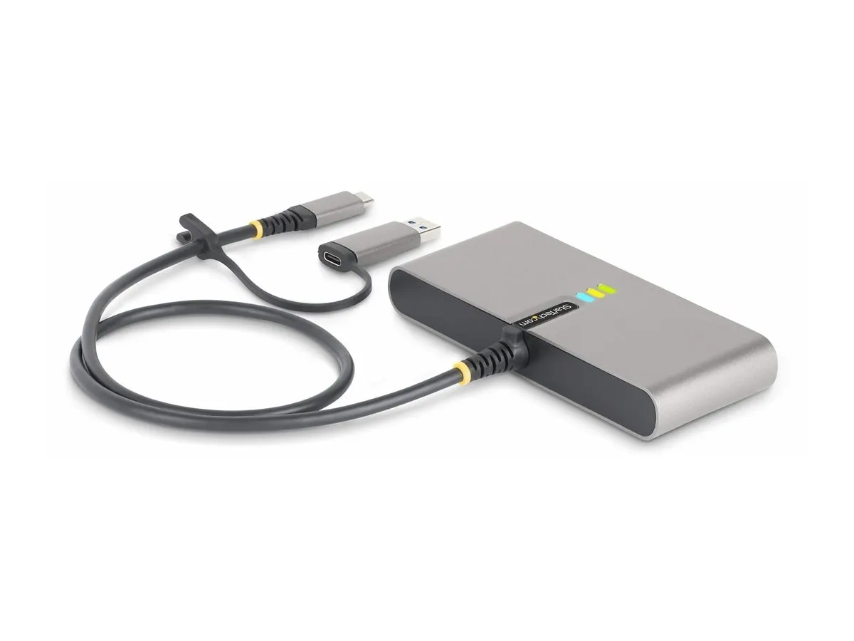 Ce concentrateur USB Type-C avec port série RS-232, Ethernet Gigabit et pass-through de livraison d'alimentation USB-C 100W ajoute deux ports USB 3.2 Gen 1 (5 Gbps) de type A à un ordinateur compatible USB. Le câble hôte USB-C de 60 cm (2 pieds) inclus comporte un adaptateur USB-C vers USB-A attaché qui permet au concentrateur USB de se connecter facilement à la fois aux ordinateurs hôtes USB-A et USB-C.