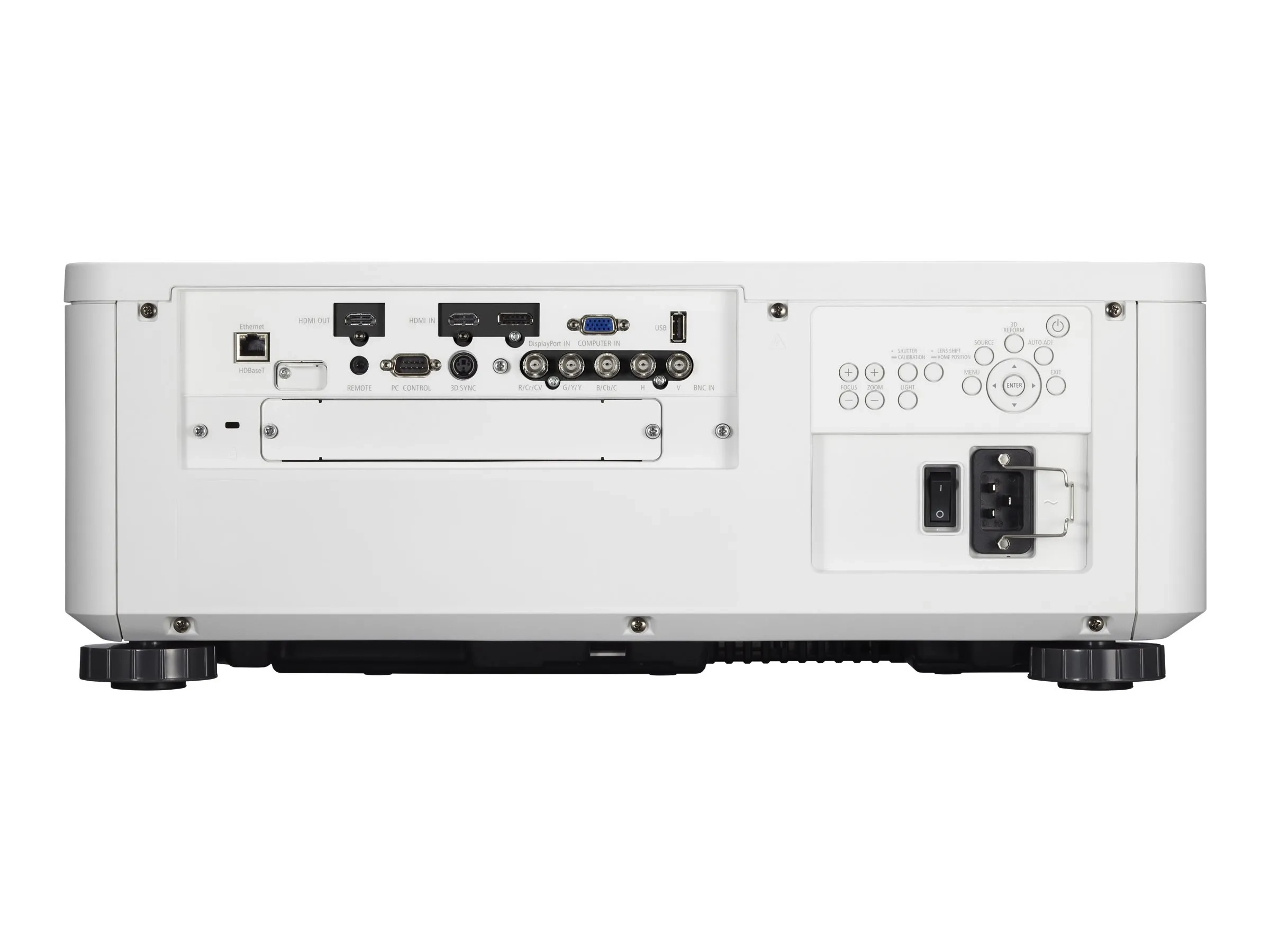 | Interfaces | 1 x entrée VGA - 15 broches HD D-Sub (HD-15) ¦ 1 x entrée composite/composant vidéo/RVB - BNC x 5 ¦ 1 x entrée HDMI - HDMI de 19 broches de type A ¦ 1 x entrée DisplayPort - DisplayPort 20 broches ¦ 1 x HDBaseT - RJ-45 ¦ 1 x sortie HDMI - HDMI de 19 broches de type A ¦ 1 x USB - USB de type A 4 broches ¦ 1 x entrée/sortie Sync 3D - mini-DIN 3 broches ¦ 1 x série RS-232 - D-Sub (DB-9) 9 broches ¦ 1 x télécommande - mini-phone 3,5 mm |