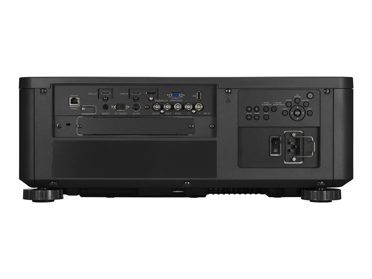| Interfaces | 1 x entrée VGA - 15 broches HD D-Sub (HD-15) ¦ 1 x entrée composite/composant vidéo/RVB - BNC x 5 ¦ 1 x entrée HDMI - HDMI de 19 broches de type A ¦ 1 x entrée DisplayPort - DisplayPort 20 broches ¦ 1 x HDBaseT - RJ-45 ¦ 1 x sortie HDMI - HDMI de 19 broches de type A ¦ 1 x USB - USB de type A 4 broches ¦ 1 x entrée/sortie Sync 3D - mini-DIN 3 broches ¦ 1 x série RS-232 - D-Sub (DB-9) 9 broches ¦ 1 x télécommande - mini-phone 3,5 mm |