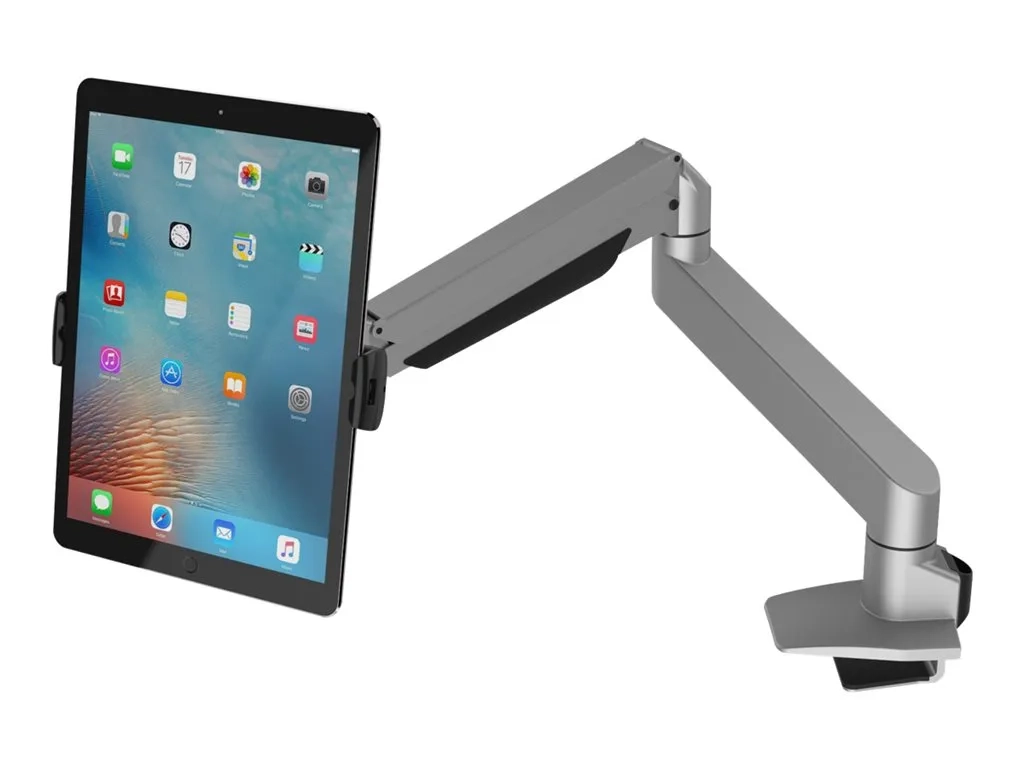 Compulocks Cling Bras telescopique articulé argenté avec support tablette Universal Noir - Kit de montage - bras réglable - pour tablette - noir, argent - Taille d'écran : jusqu'à 13 pouces - montrable sur bureau