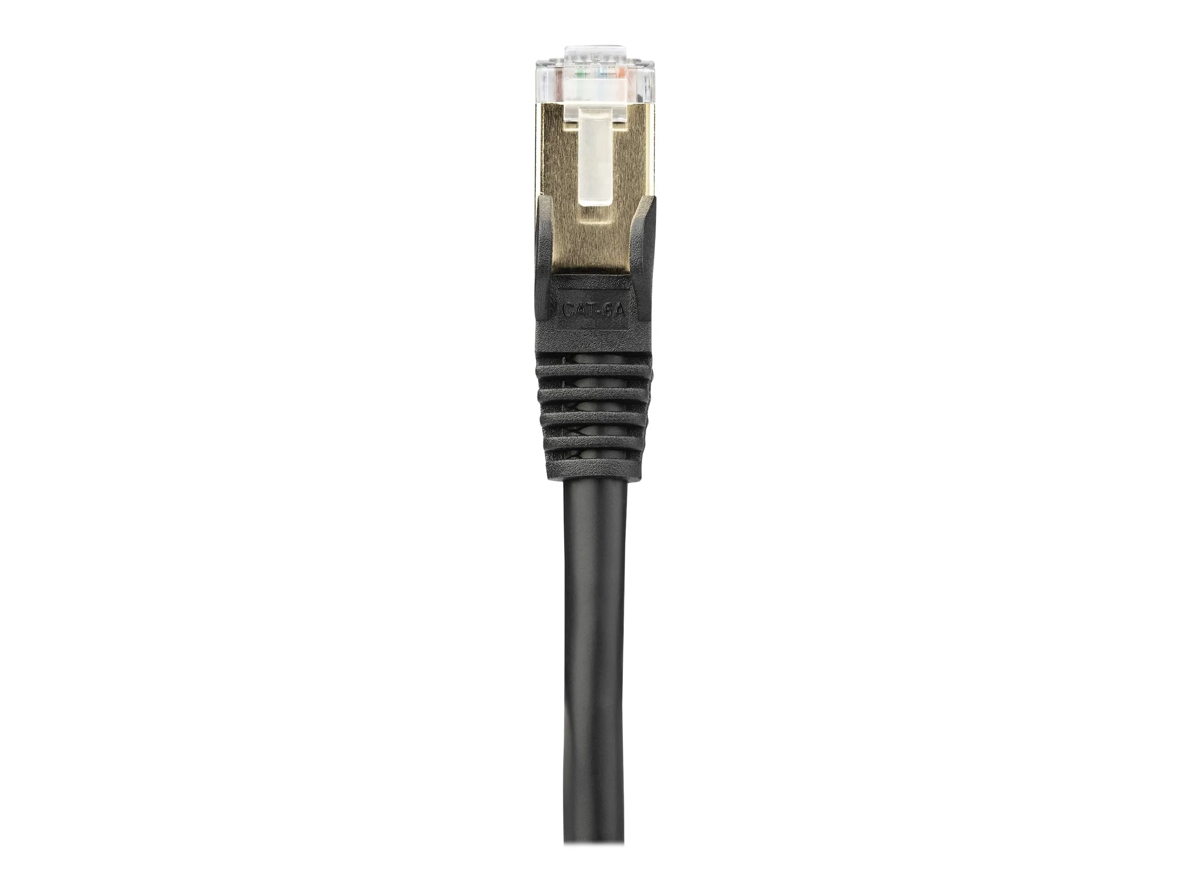 Le câble Ethernet CAT6a est également équipé de capuchons destinés à atténuer la tension en protégeant les connecteurs RJ45 contre les torsions à des angles excessifs. Il y a ainsi moins de risque d''endommager le câble et d''affecter les performances et la connectivité réseau.