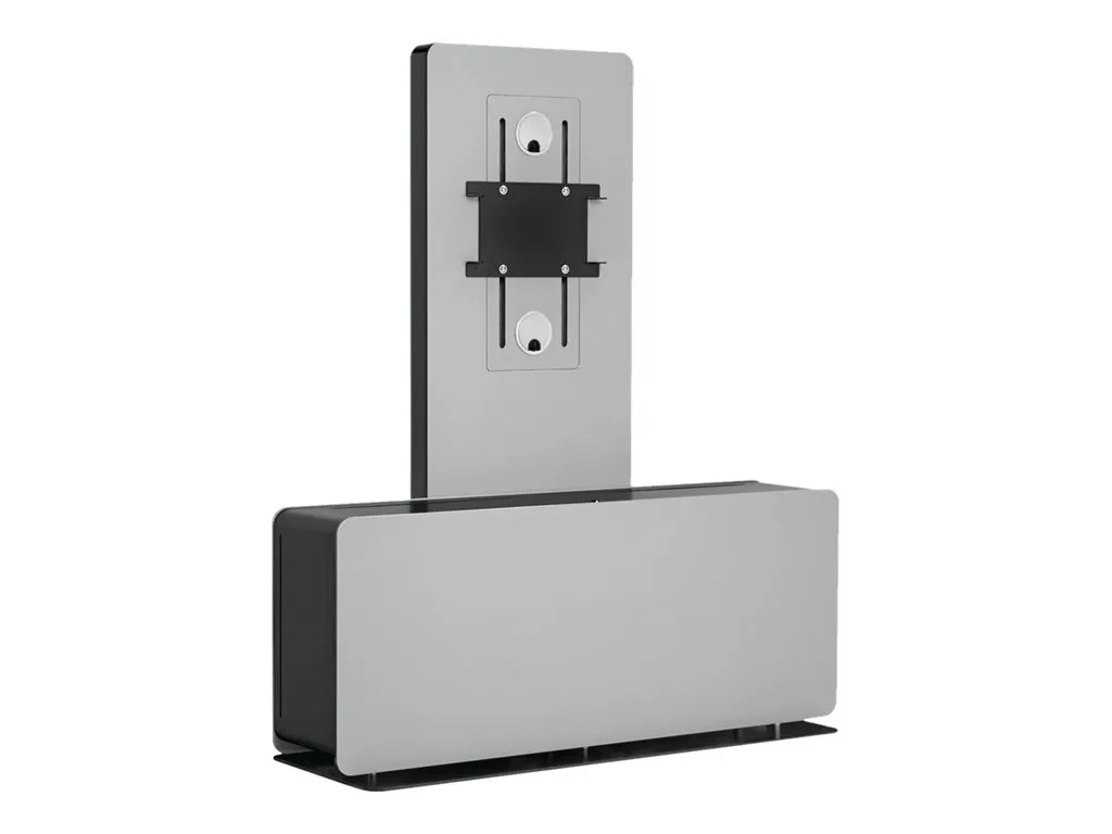 Pour monter un ou deux écrans, vous choisissez la barre et les bandes de l'interface Connect-it de Vogel's pour créer un montage parfait. Un support spécial (PVA 5050 / PVA 5070) peut être utilisé pour monter une caméra ou des haut-parleurs destinés à une vidéoconférence. On peut facilement enlever le panneau d'aluminium à l'avant, ce qui permet d'accéder à l'intérieur, là où on peut stocker un codec et d'autres équipements périphériques. Outre les vidéoconférences, ce meuble s'utilise aussi idéalement comme kiosque avec un écran en position portrait ou comme support d'écran de luxe dans lequel on peut ranger des périphériques.