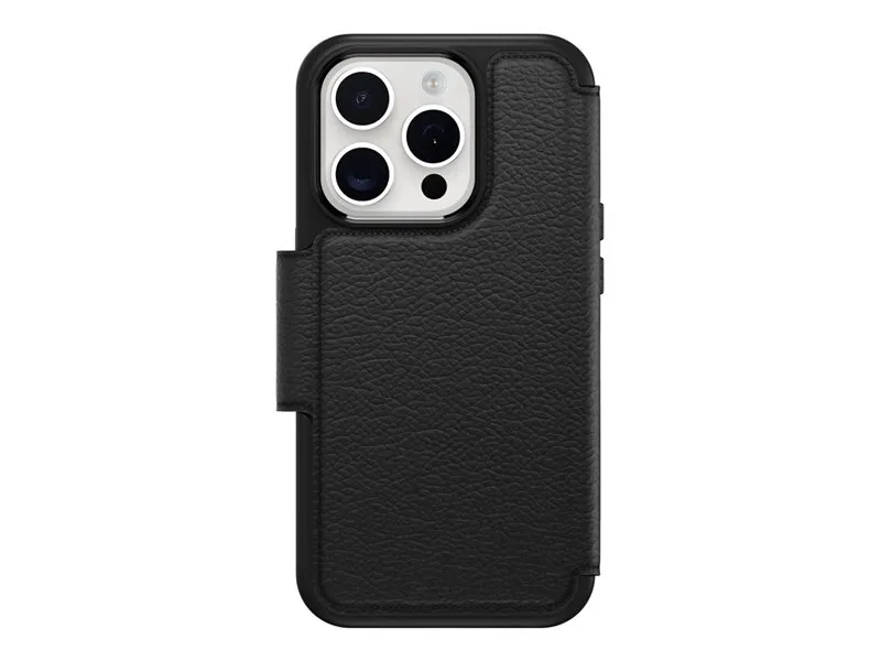 OtterBox Strada Series - Étui à rabat pour téléphone portable - compatibilité avec MagSafe - cuir - ombre (noir) - pour Apple iPhone 15 Pro