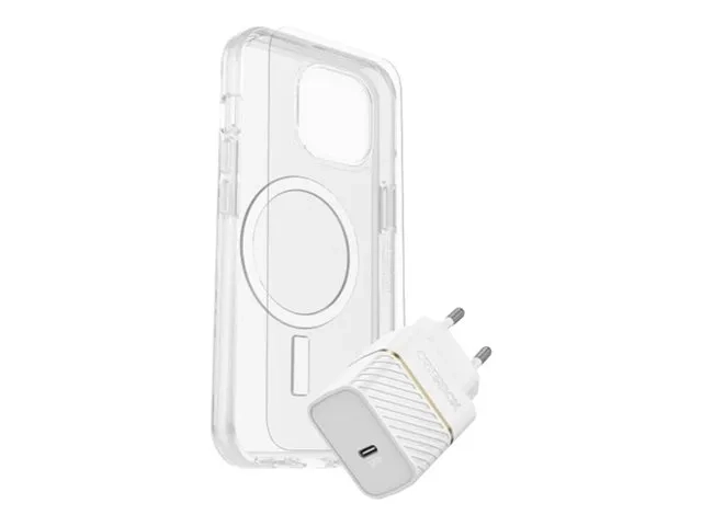 La housse de protection OtterBox Symmetry Series est conçue pour les téléphones portables, offrant une protection robuste sans sacrifier le style. Ce design ultra-mince comprend des bords renforcés et des bords surélevés autour de l'appareil photo pour une sécurité accrue, garantissant que votre appareil reste à l'abri des chocs et des chutes. Les aimants intégrés et la prise en charge du chargement sans fil le rendent pratique à utiliser, tandis que le rebord de l'écran protège ce dernier des rayures. Un protecteur d'écran en verre de qualité supérieure et un chargeur mural à charge rapide USB-C 30W sont inclus dans votre achat, ce qui augmente la valeur de votre nouvel étui de protection. Fabriqué à partir de 40 % de plastique recyclé, cet étui protège votre appareil et contribue aux efforts de développement durable. Conforme à la norme MIL-STD-810G 516.6, il offre une protection fiable contre les chocs ainsi qu'une fonctionnalité élégante, ce qui en fait un accessoire essentiel pour tout utilisateur de smartphone.