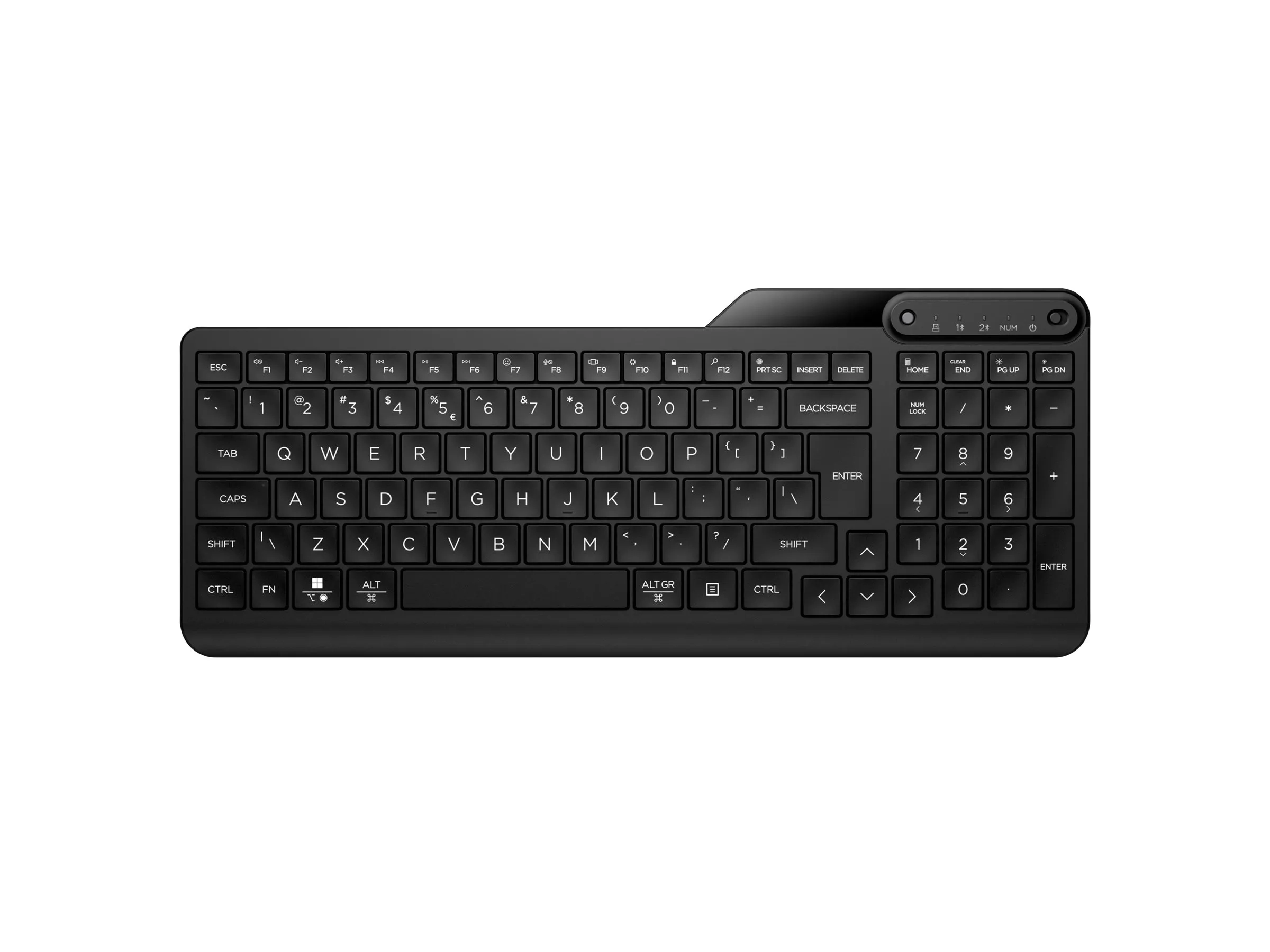 HP 475 - Clavier - bi-mode, multi-dispositifs, compact, disposition en 2 zones, déplacement des touches surbaissé, 12 boutons programmables - sans fil - 2.4 GHz, Bluetooth 5.3 - Français - noir de jais
