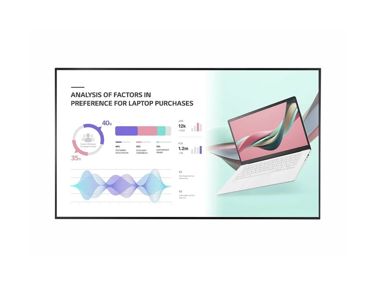| Fonctions supplémentaires | Certifié pour un fonctionnement continu 24h/24 et 7j/7, Image Sticking Minimization (ISM), Crestron Connected Compatible, BEACON technology, support 10 bits, image dans l'image (pas de tuner), image par image (pas de tuner), emplacement OPS, 1,07 milliard de couleurs |