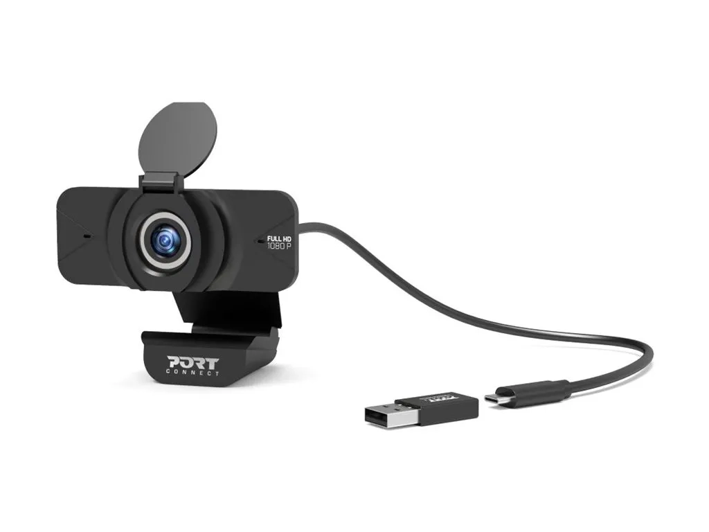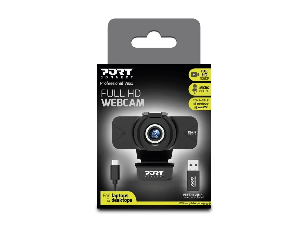 La webcam full HD PORT Connect est un must pour la vidéoconférence. Appréciez des conversations fluides avec vos collègues, votre famille et vos amis grâce à ses fonctions avancées. Une image de haute qualité avec une résolution vidéo Full HD 1080P, un grand angle de 90°, une restitution fidèle des couleurs, une mise au point automatique, une vision nocturne et une amélioration de la luminosité. Tout cela combiné à une transmission claire de la voix par son microphone intégré avec annulation de bruits. Préservez votre vie privée et partagez uniquement ce que vous désirez grâce à son cache caméra. Compatible avec PC et Mac, il suffit de la placer sur votre ordinateur portable ou de bureau et de la connecter en USB-A ou USB-C pour commencer à chatter.