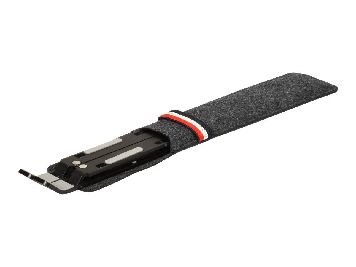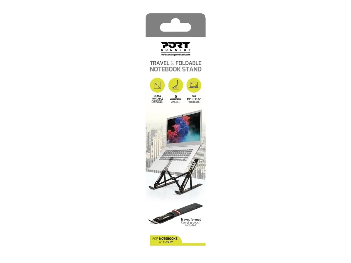 Le support de voyage & pliable pour ordinateur portable de PORT Connect est compatible avec les ordinateurs portables de 10" à 15,6" et la plupart des tablettes. Son design ergonomique donne le choix entre 6 angles différents permettant l'adoption d'une posture confortable et naturelle. Il se transporte facilement dans sa pochette dédiée grâce à sa structure ultra-légère et pliable. De plus, son corps en aluminium entièrement ouvert, dissipant la chaleur, maximise les performances de l'ordinateur portable lors d'une utilisation prolongée. Une sécurité optimale de l'appareil est également assurée grâce à ses crochets de sécurité et ses patins antidérapants.