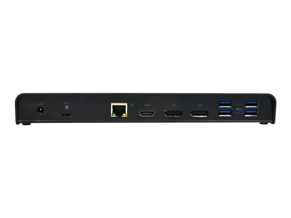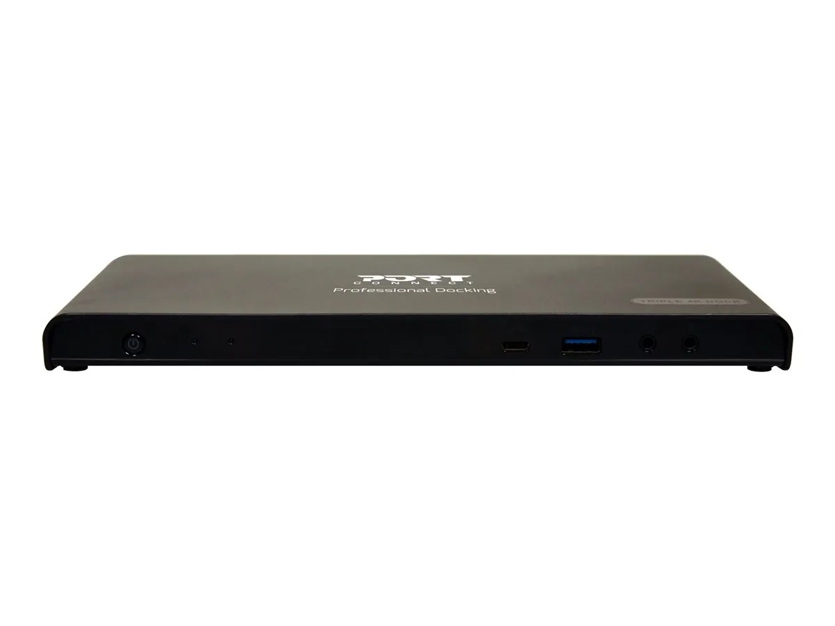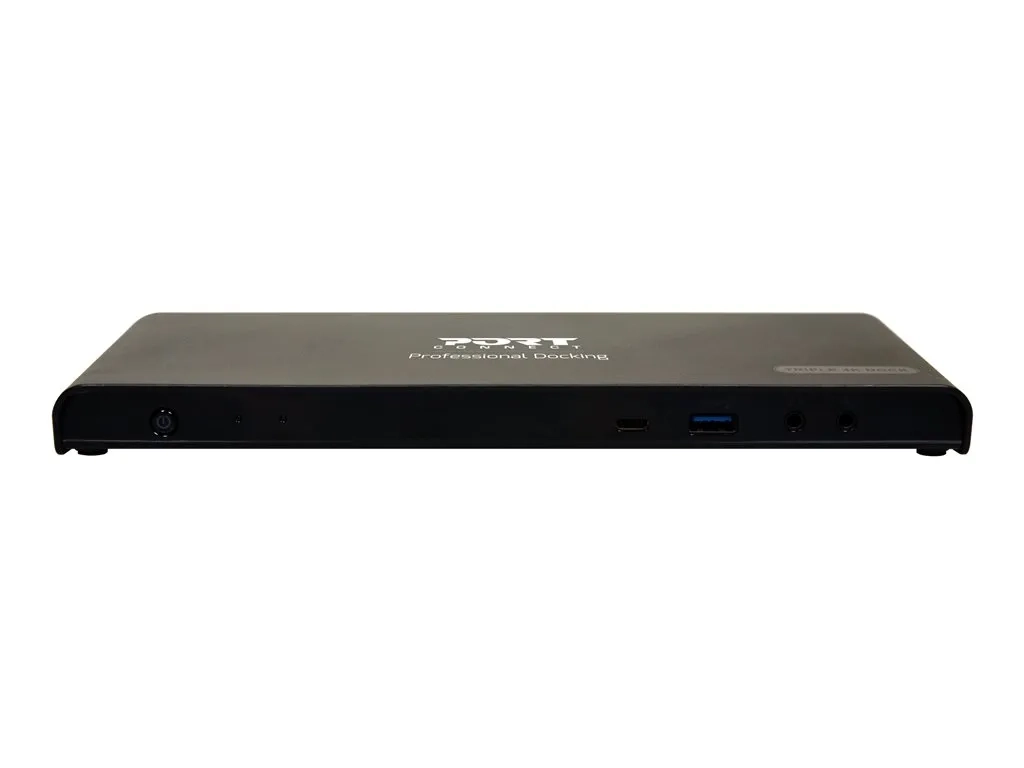 La Triple Screen Docking Station Office 3 X 4K - USB-C + USB 3.0 est une station d'accueil USB 3.0 et USB-C, qui augmente la connectivité de l'ordinateur portable et fournit jusqu'à 60 W d'alimentation, via un réplicateur d'énergie.