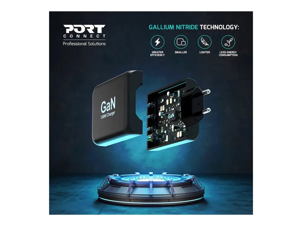 PORT Connect - Adaptateur secteur - GaN - 130 Watt - 5 A - PD, QC 3.0 - 4 connecteurs de sortie (USB type A, 3 x USB-C) - sur le câble : USB-C - Europe