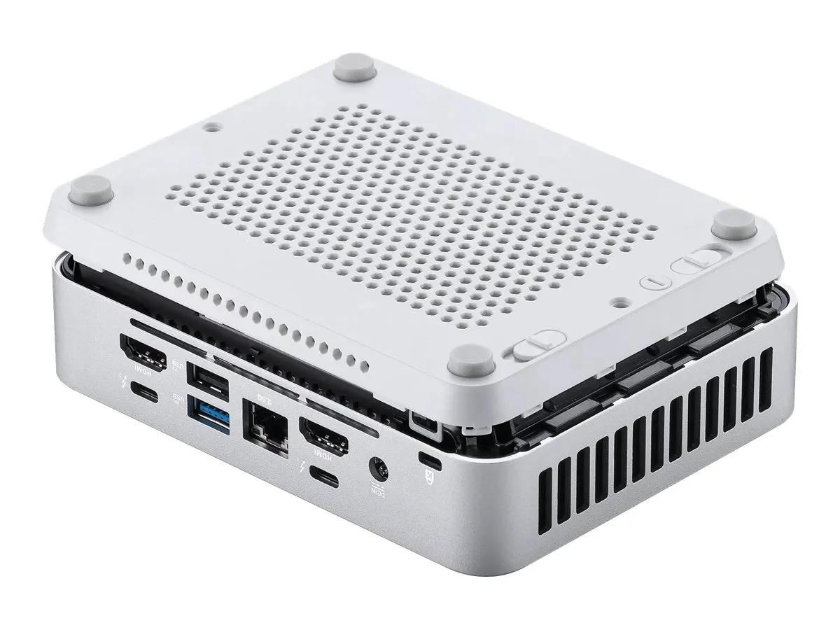 Sans disque dur intégré, il offre la flexibilité de personnaliser les solutions de stockage en fonction des besoins spécifiques, grâce à deux emplacements de carte M.2 et à la technologie DDR5 SDRAM pour la mémoire. Les options de connectivité avancées du kit, notamment Thunderbolt 4, USB-C 3.2 Gen 2x2 et plusieurs ports USB 3.2 Gen 2, ainsi que le double HDMI et la prise en charge de 4 moniteurs, en font un choix idéal pour les environnements multi-écrans.