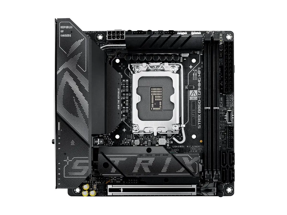 La carte mère ASUS ROG STRIX B860-I GAMING WIFI est conçue pour les passionnés de jeux à la recherche de performances et de fiabilité dans une carte mère mini ITX compacte. Équipée de deux emplacements DIMM prenant en charge la mémoire SDRAM DDR5, elle accepte des vitesses de RAM allant jusqu'à 4533 MHz (O.C.), garantissant un fonctionnement fluide pour les applications exigeantes et le multitâche. La carte offre un large éventail d'options de connectivité, notamment USB 3.2 Gen 2 et Thunderbolt 4, offrant des connexions polyvalentes pour le transfert de données à grande vitesse et les périphériques. Pour améliorer l'expérience audio, la carte mère intègre une carte son haute définition avec prise en charge Dolby Atmos, offrant une qualité sonore immersive pendant les jeux ou la consommation de médias. Les capacités réseau avancées comprennent 2,5 Gigabit Ethernet et la prise en charge du Wi-Fi 6E, garantissant des connexions Internet stables et rapides. Avec des fonctionnalités comme ASUS Aura Sync pour un éclairage RGB personnalisable et un design facile à bricoler, le ASUS ROG STRIX B860-I GAMING WIFI s'impose comme une base puissante pour toute configuration de jeu.