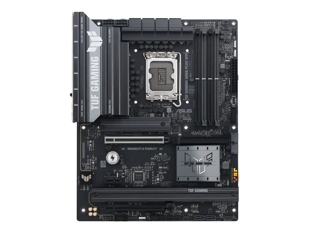 La carte mère ASUS TUF GAMING B860-PLUS WIFI offre une base solide pour les joueurs et les constructeurs à la recherche de capacités de haute performance. Dotée d'un chipset Intel B860, elle prend en charge les processeurs Intel Core Ultra (série 2) et présente un format ATX polyvalent. Cette carte mère comprend quatre emplacements DIMM pour la mémoire SDRAM DDR5, ce qui vous permet de bénéficier de vitesses de mémoire allant jusqu'à 4333 MHz (O.C.). Grâce à des solutions de refroidissement avancées telles que des dissipateurs M.2 et un dissipateur VRM, la carte mère maintient des températures optimales même pendant les sessions de jeu intenses.