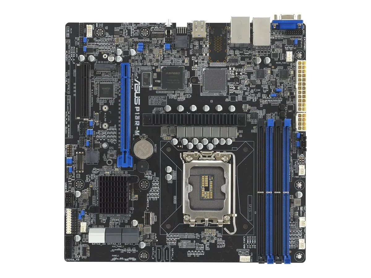 La carte mère ASUS P13R-M est conçue pour répondre aux exigences de l'informatique moderne, en offrant un mélange de performances, de connectivité et d'options d'extension. La prise en charge de la mémoire SDRAM DDR5 à des vitesses allant jusqu'à 4400 MHz garantit un fonctionnement fluide et efficace. L'inclusion de ports USB 3.2 Gen 2 et de deux contrôleurs Gigabit Ethernet alimentés par Intel I210AT assure un transfert de données à grande vitesse et des connexions réseau fiables, ce qui le rend idéal pour une utilisation à la maison et au bureau. Les capacités d'extension sont robustes, avec des emplacements PCIe 5.0 et 4.0 pour les mises à niveau graphiques et de stockage, ainsi que plusieurs ports SATA-600 et un socket M.2 pour une variété de configurations de stockage. Le format micro ATX de la carte mère, associé au chipset Intel C262, prend en charge une large gamme de processeurs, y compris Pentium et Xeon E, offrant ainsi une grande flexibilité pour répondre aux différents besoins informatiques. En outre, des fonctions avancées telles que ASMB11-iKVM pour la gestion à distance et la surveillance complète du matériel garantissent l'efficacité et la fiabilité de votre système, ce qui fait de la carte ASUS P13R-M un excellent choix pour ceux qui recherchent une carte mère alliant performance et praticité.