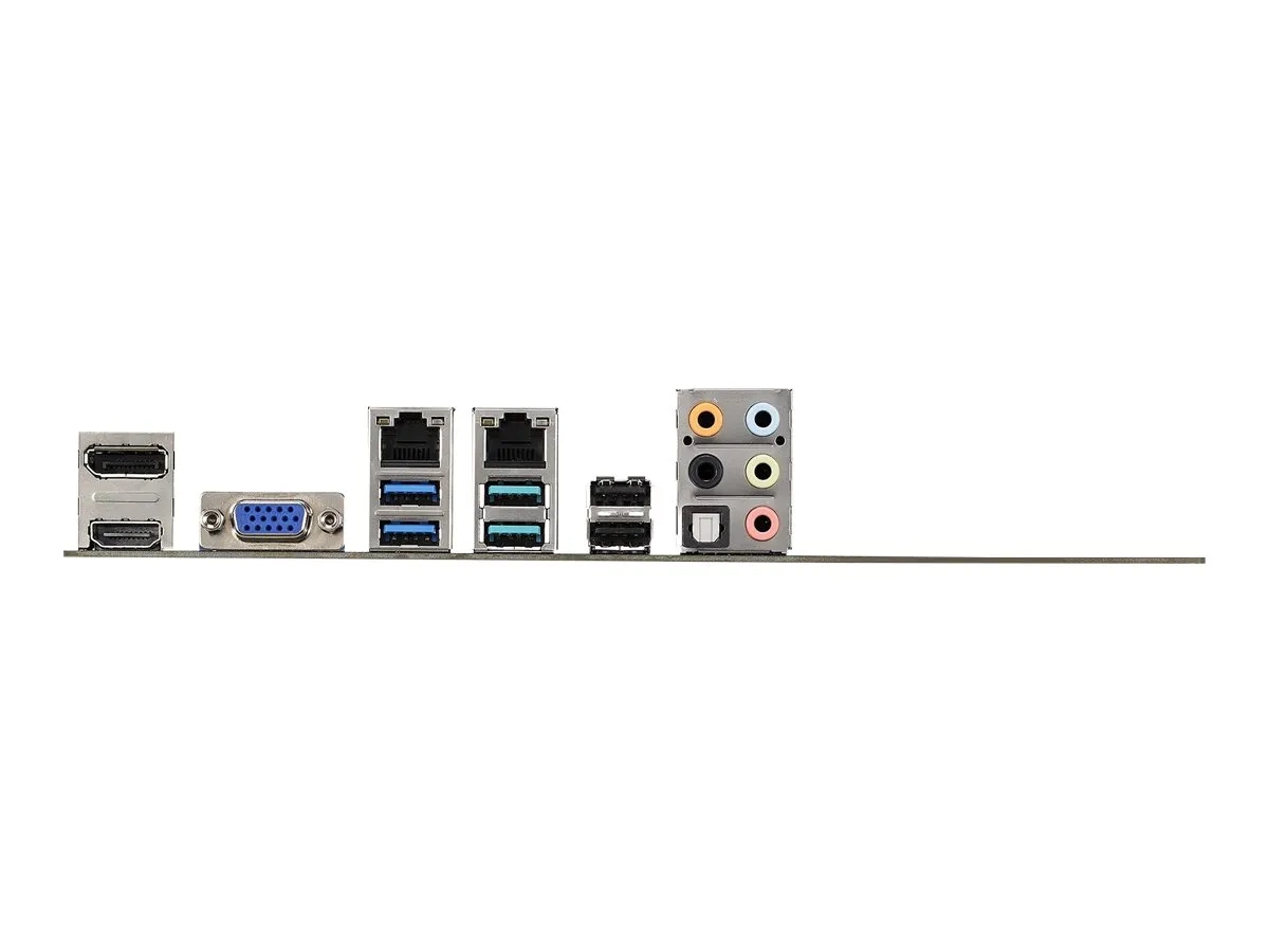 | Interfaces | 2 x LAN (Gigabit Ethernet) ¦ 2 x USB 3.1 Gen 2 ¦ 2 x USB 2.0 ¦ 2 x USB 3.1 Gen 1 ¦ 1 x HDMI ¦ 1 x DisplayPort ¦ 1 x VGA ¦ 1 x sortie de ligne audio (centre/caisson de basses) - mini-jack ¦ 1 x sortie de ligne audio (arrière) - mini-jack ¦ 1 x entrée de ligne audio - mini-jack ¦ 1 x sortie de ligne audio - mini-jack ¦ 1 x microphone - mini-jack ¦ 1 x TOSLINK |