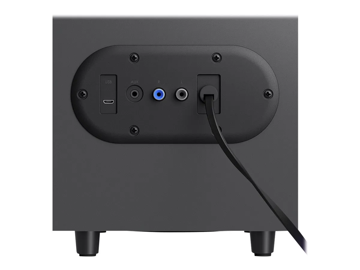 Que pouvez-vous faire avec 20 mètres? Une portée sans fil de 20 mètres vous permet de régler le son de l'autre côté de la pièce, le tout à l'aide de la molette de réglage sans fil. Appuyez dessus et faites-la tourner pour la lecture, la pause, la mise en sourdine La fonction Activer/désactiver la sourdine fonctionne lorsque la connexion est établie via une entrée 3,5 mm. Les fonctions Lecture/Pause/Passer/Retour arrière fonctionnent lorsque les haut-parleurs sont connectés via USB ou Bluetooth. Les commandes audio peuvent varier lorsque vous lisez certains contenus LIVE via USB/Bluetooth. et régler le volume et les basses. Faites tout cela à partir de la molette de réglage. C'est facile, et vous n'avez même pas besoin de vous lever du canapé.