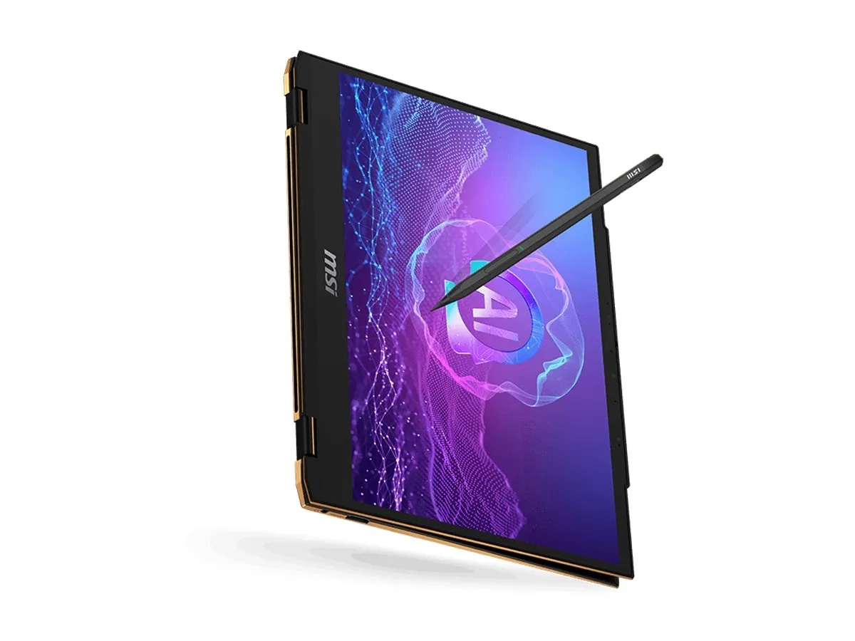 Le MSI Summit 13 AI+ Evo est un ordinateur portable puissant et polyvalent conçu pour les professionnels et les utilisateurs créatifs. Équipé d'un écran tactile WUXGA IPS de 13,3 pouces, il offre des visuels époustouflants et des couleurs riches avec une couverture sRGB de 100 %, garantissant une expérience immersive, que ce soit pour le travail ou le divertissement. L'appareil est équipé d'un processeur Intel Core Ultra 7 à 8 cœurs, offrant une vitesse turbo allant jusqu'à 4,8 GHz, associé à 32 Go de SDRAM LPDDR5X pour un multitâche et des performances sans faille. Cet ordinateur portable donne la priorité à la connectivité et à la sécurité. Avec un SSD PCIe 4.0 NVMe de 1 To, il offre un vaste espace de stockage et des temps de chargement rapides. Les capacités sans fil avancées sont prises en charge par le Wi-Fi 7 et le Bluetooth 5.4, facilitant des connexions rapides et fiables. L'appareil comprend divers capteurs et fonctions de sécurité tels qu'un lecteur d'empreintes digitales et une caméra IR intégrée pour Windows Hello, ce qui permet de garder les informations de l'utilisateur en sécurité tout en garantissant la facilité d'accès. Le MSI Summit 13 AI+ Evo allie performances et portabilité dans un design rabattable à 360°, ce qui lui permet de s'adapter à tous les environnements de travail.