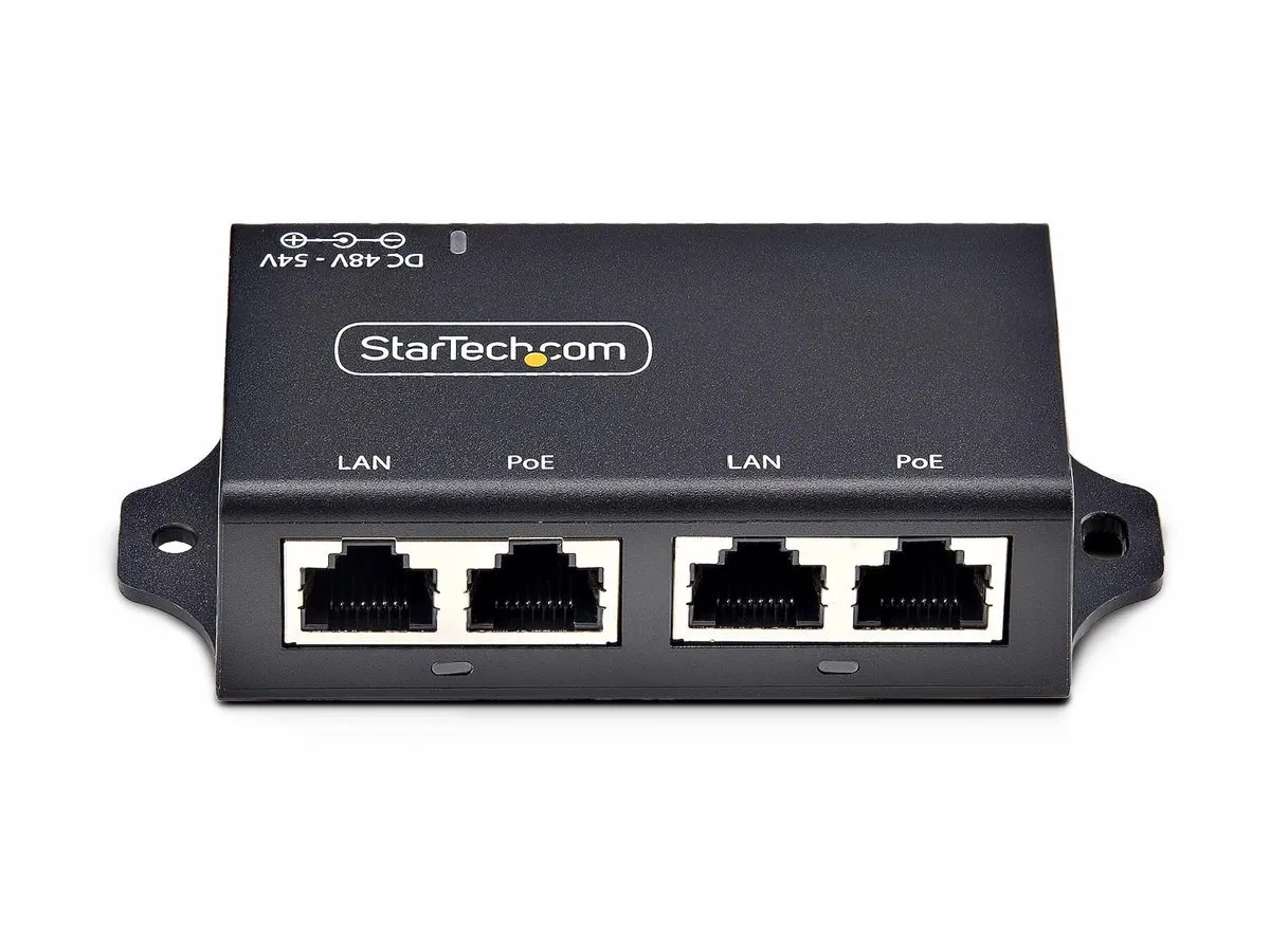 Ce injecteur PoE+ multi-vitesse à 2 ports sert d'équipement d'alimentation (PSE) et permet des vitesses Ethernet de 10/100/1000 Mbps. Cet injecteur en ligne mid-span peut transmettre des données réseau et de l'alimentation jusqu'à 328 pieds (100 m) pour deux dispositifs alimentés (PD).