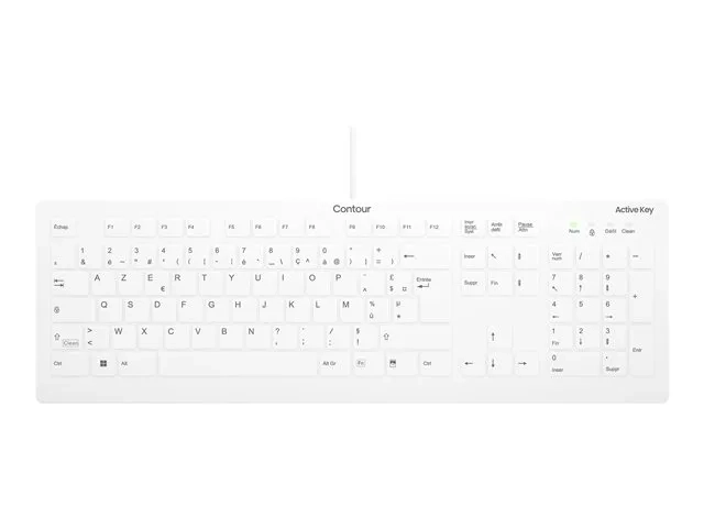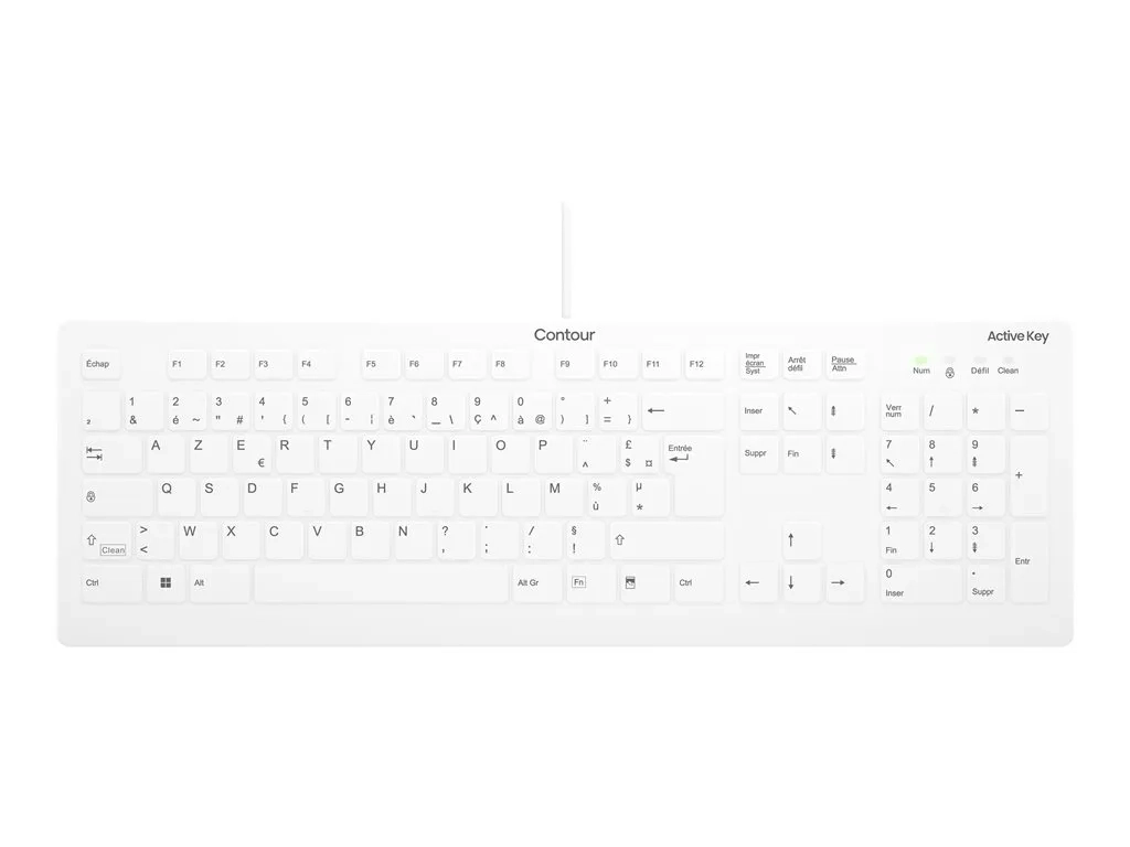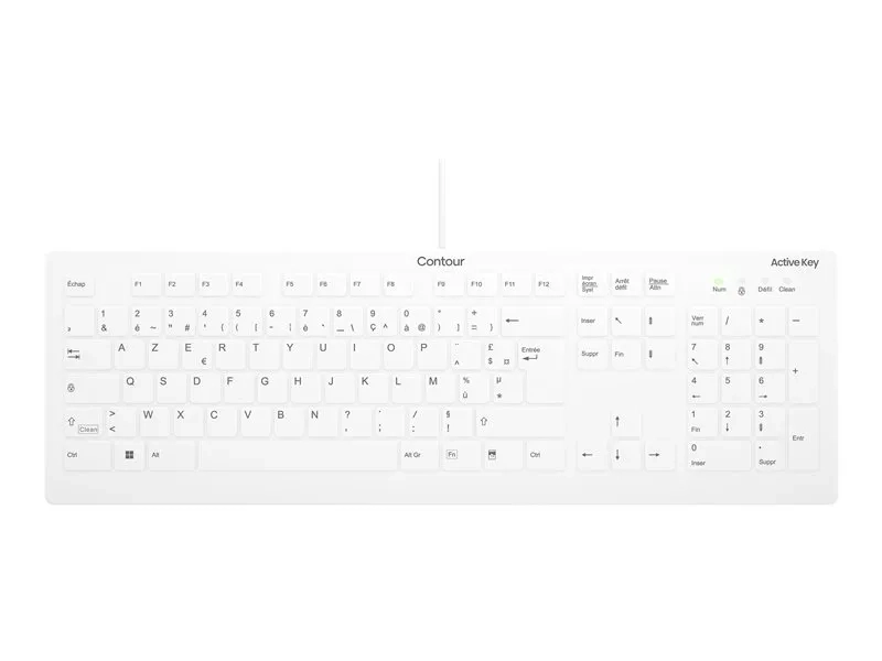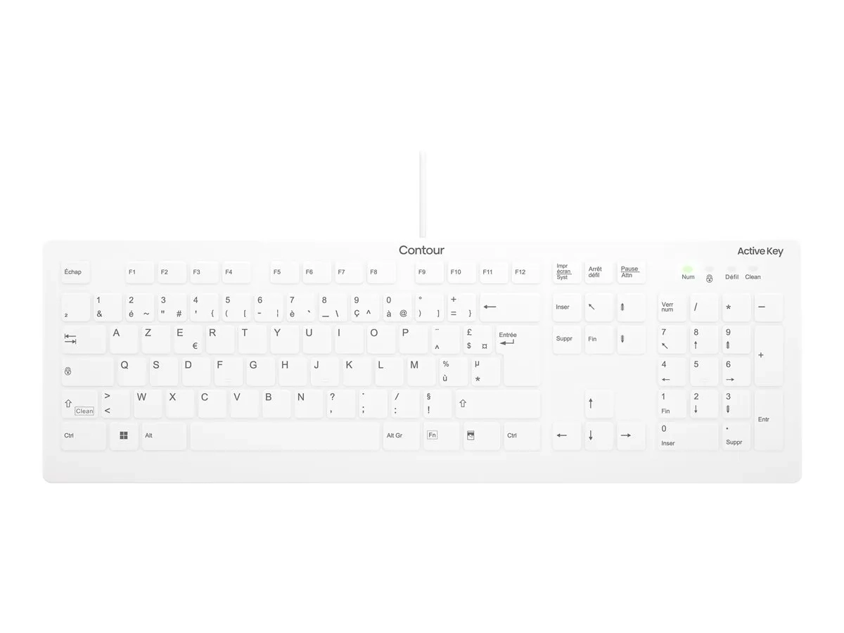 Contour Active Key AK-C8112 - Clavier - medical, hygienic design - 100% - full size - lavable - USB - AZERTY - Français - blanc