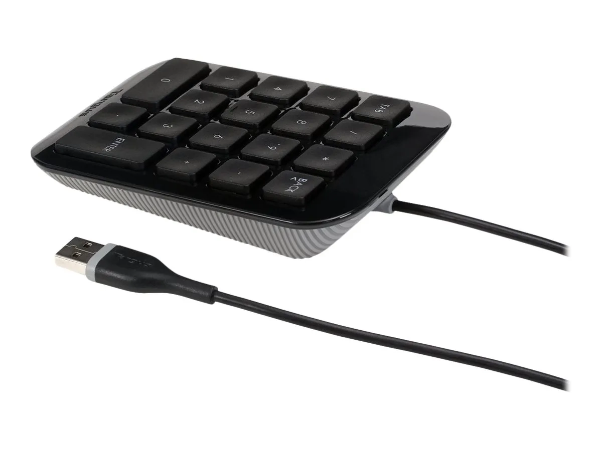 Le pavé numérique Targus Numeric Keypad permet aux utilisateurs de taper des nombres rapidement et facilement dans des feuilles de calcul et d'autres applications. Les grandes touches concaves de 19 mm améliorent la vitesse et la précision en facilitant le repérage et la frappe des numéros que vous cherchez. L'inclinaison ergonomique intégrée offre un confort supplémentaire et aide ainsi à réduire la fatigue du poignet après une longue journée de travail. Le cordon USB est assez long afin de vous offrir davantage de flexibilité dans l'espace de travail. Idéal pour travailler au bureau ou à la maison.
