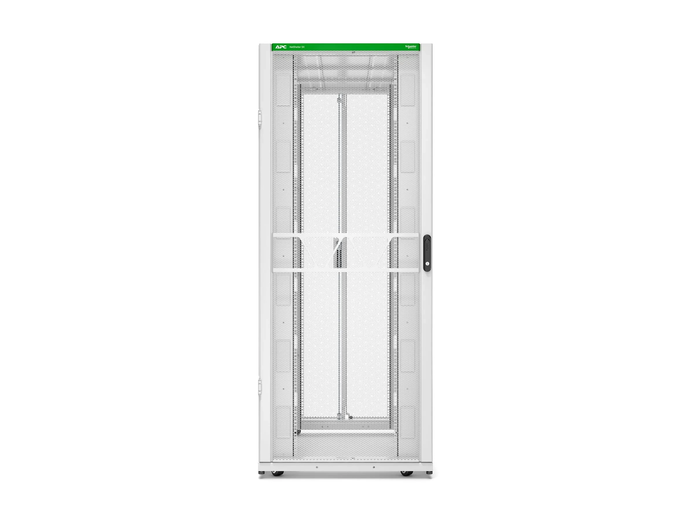 Le rack APC Netshelter SX Enclosures est fiable, polyvalente et conçu pour les environnements informatiques exigeants. Avec des capacités de charge plus importantes et plus d'espace pour les équipements, il permet une plus grande densité informatique. Il est possible de choisir parmi les options standard, large, extra large et grande profondeur. L'aspect moderne est parfait pour les colocations et les entreprises en contact avec la clientèle. Le rack permet une simplification du workflow grâce à un accès facile au câblage et à l'équipement, et une optimisation de la circulation de l'air et de la gestion des câbles grâce à notre large gamme d'accessoires APC Les portes s’ouvrant à 270° (180° en baie) permettent de maintenir les allées libres, tandis que la perforation de 80 % des portes améliore la circulation de l'air pour les serveurs haute puissance. Construit de manière durable tout en acier, il dure des années et peut être utilisé pour diverses applications. Il affiche également un taux de décarbonisation de 3,3 % et est livré dans un emballage solide et recyclable.