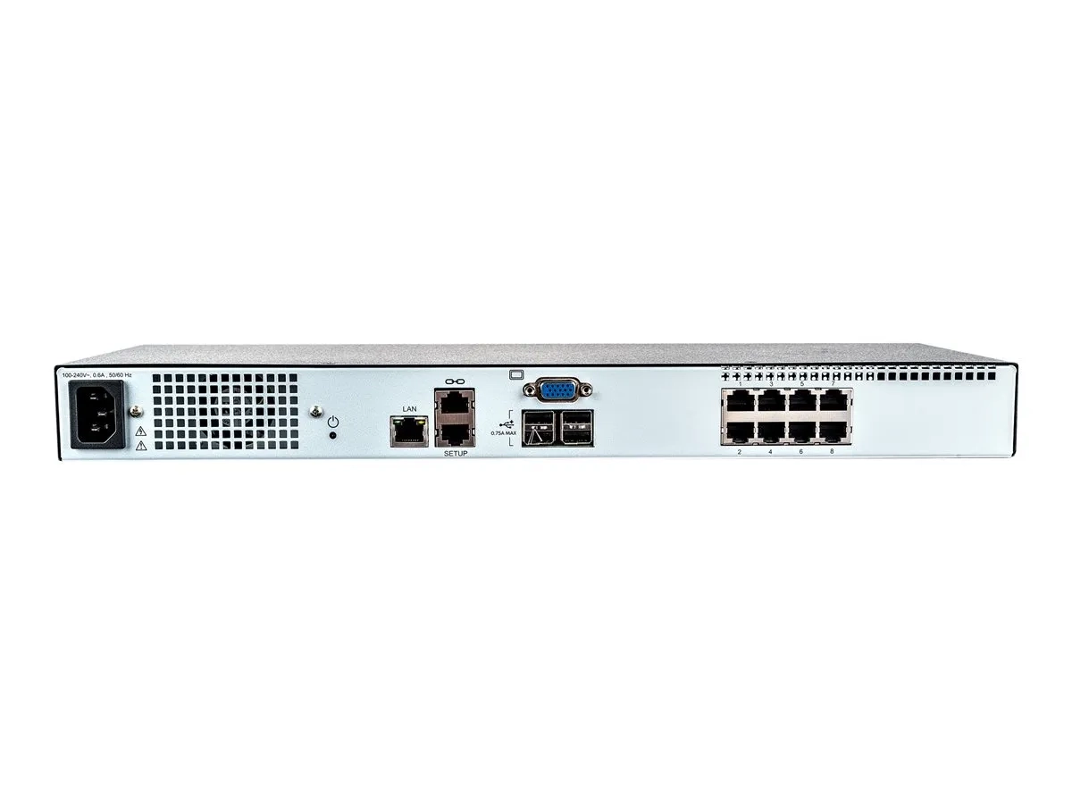 | Interfaces | 8 x KVM RJ-45 ¦ Clavier (PS/2) / souris (PS/2) ¦ 4 x USB 2.0 |