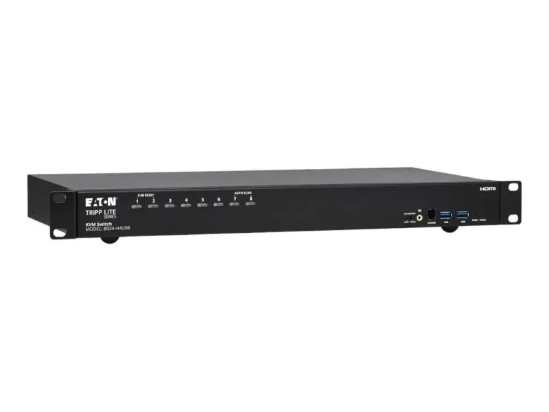 Le commutateur KVM 4K HDMI/USB de la série Eaton Tripp Lite est conçu pour améliorer votre environnement de travail grâce à ses performances et à ses capacités polyvalentes. Ce commutateur à 8 ports permet une commutation transparente entre plusieurs ordinateurs tout en maintenant la qualité vidéo avec une résolution maximale de 4096 x 2160 à 60 Hz. Doté d'une entrée/sortie audio et vidéo, il prend en charge l'audio 2.1 canaux pour une expérience multimédia complète, ce qui le rend adapté à toute configuration audiovisuelle. Le format rackable garantit une utilisation efficace de l'espace dans votre salle de serveurs ou votre bureau, tandis que le kit de montage en rack inclus facilite l'installation. Doté de fonctions conviviales, le commutateur offre un affichage à l'écran et une commutation par bouton-poussoir/touche de raccourci pour une utilisation rapide. Avec une consommation électrique de seulement 9,77 watts, ce commutateur KVM est économe en énergie sans compromettre les performances. Conçu pour durer, il est conforme à plusieurs normes, garantissant un fonctionnement fiable dans divers environnements. Qu'il s'agisse de gérer plusieurs ordinateurs dans une entreprise ou d'optimiser l'espace de travail dans une configuration personnelle, ce commutateur KVM offre une solution pratique pour répondre à des besoins variés.