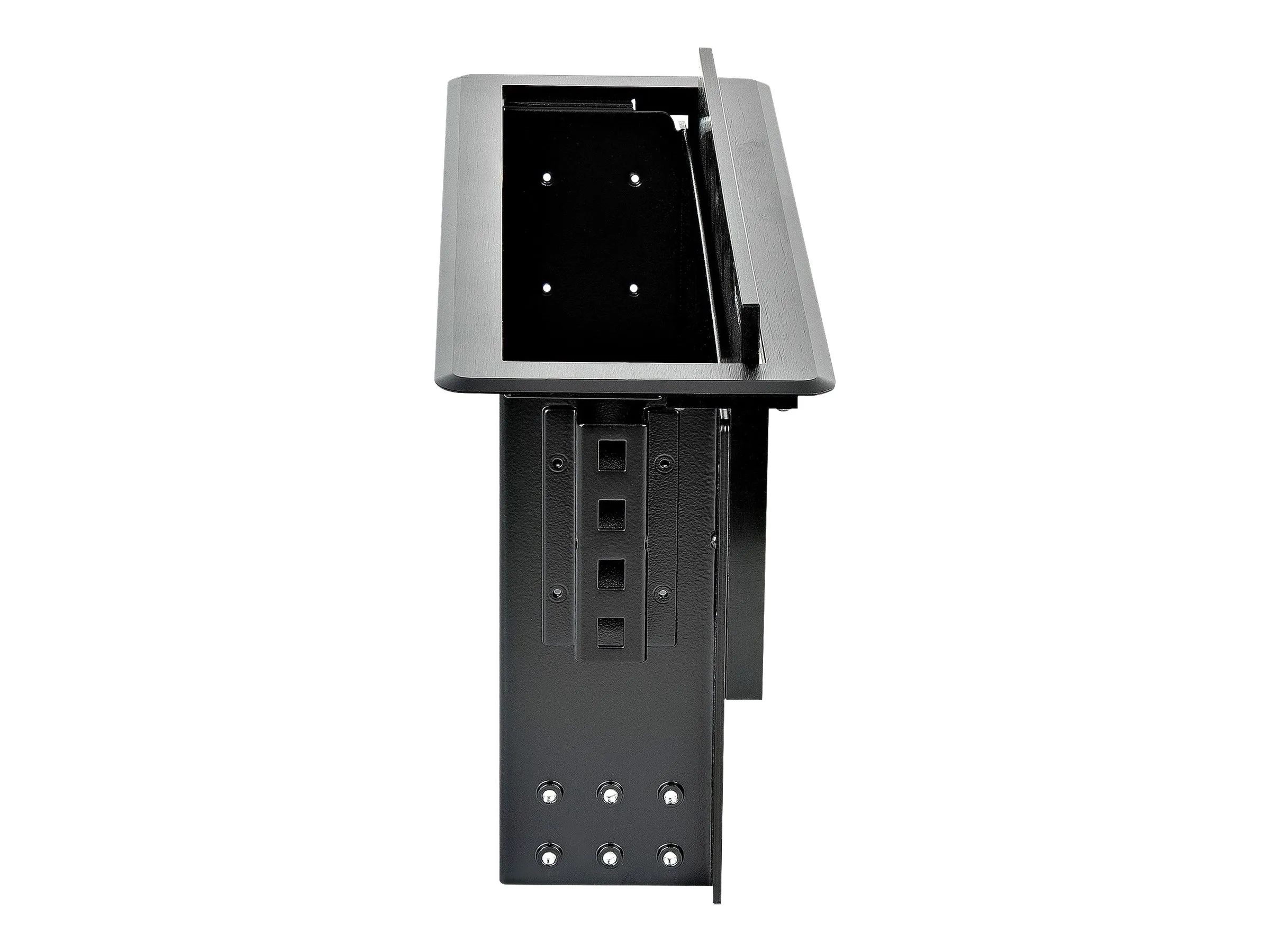 Créez une solution pratique et élégante qui impressionne vos visiteurs et facilite leurs besoins. Le boîtier de connectivité est doté d''une finition en aluminium noir qui complète votre table et vos périphériques. De plus, le couvercle se ferme au niveau de la surface de la table pour dissimuler les points de connexion. Ce boîtier de connectivité est facile à installer sur une table ou un bureau.