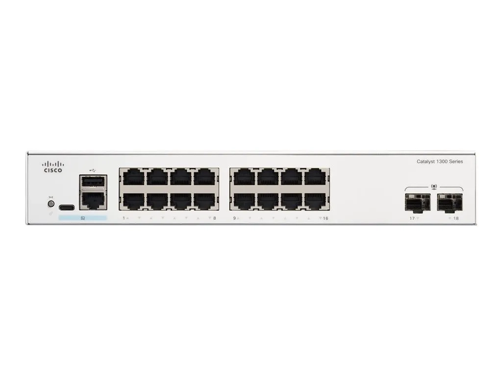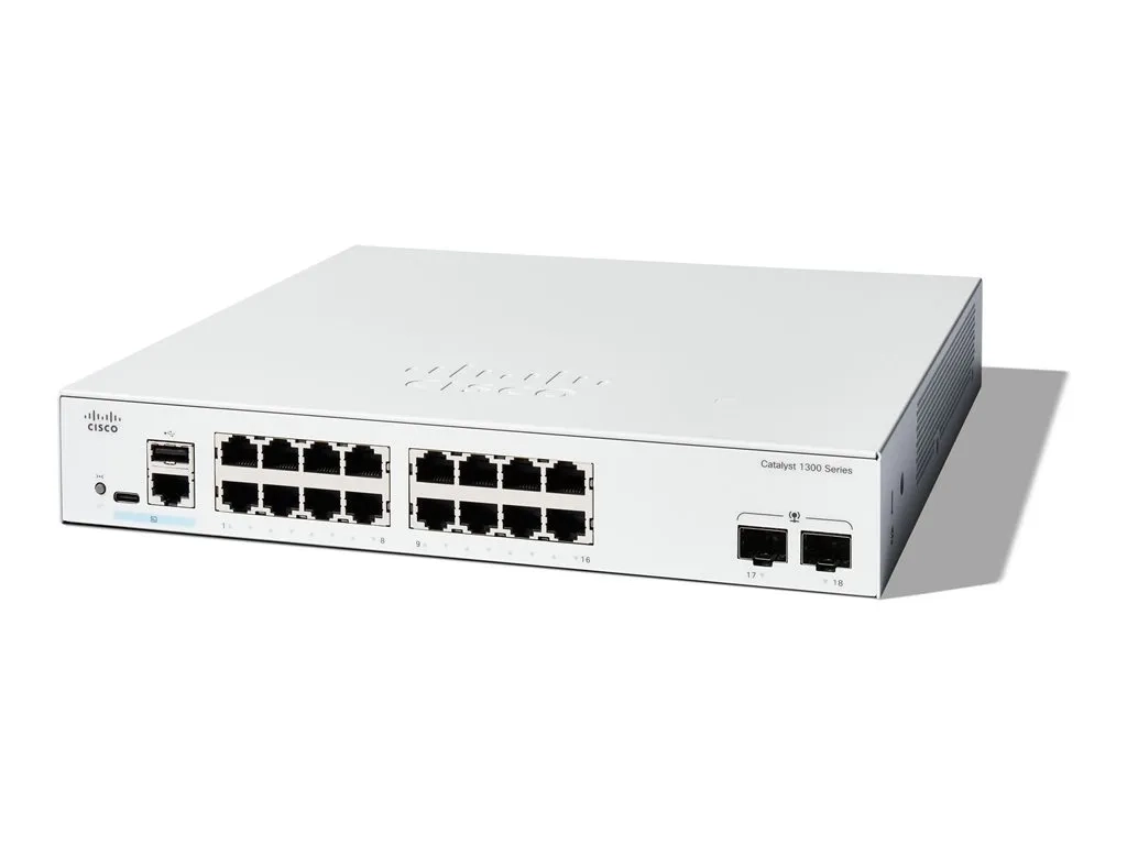 Cisco Catalyst 1300-16T-2G - Commutateur - C3 - Géré - 16 x 10/100/1000Base-T + 2 x Gigabit Ethernet SFP - Montable sur rack