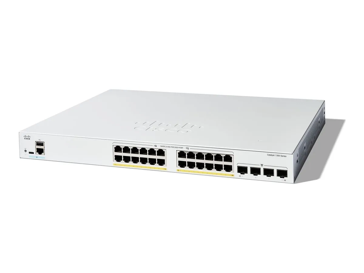 Cisco Catalyst 1300-24FP-4G - Commutateur - C3 - Géré - 24 x 10/100/1000 (PoE+) + 4 x Gigabit SFP - Montable sur rack - PoE+ (370 W)