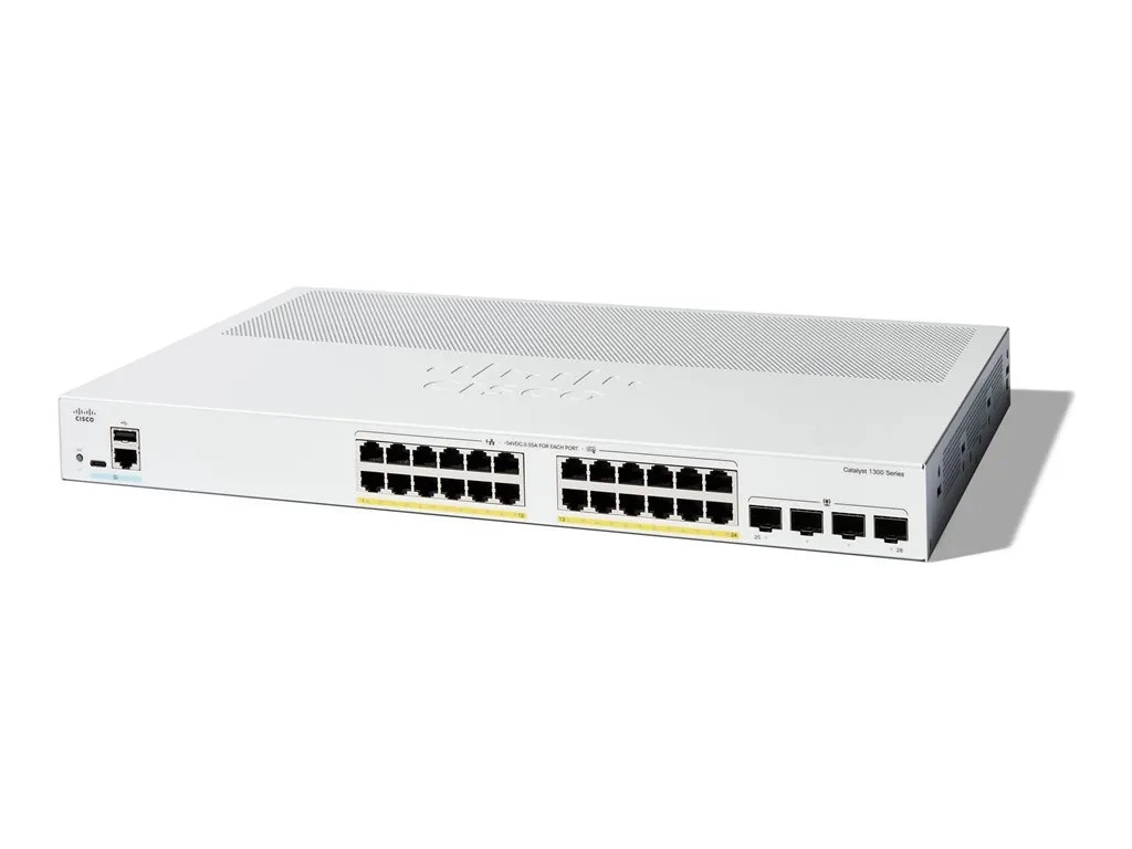 Cisco Catalyst 1300-24P-4G - Commutateur - C3 - Géré - 24 x 10/100/1000 (PoE+) + 4 x 1 Gigabit SFP - Montable sur rack - PoE+ (195 W)