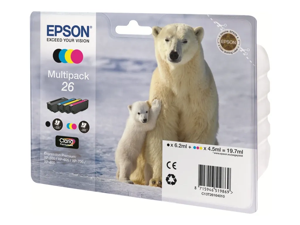 Epson 26 Multipack - Pack de 4 - noir, jaune, cyan, magenta - original - emballage coque avec alarme radioélectrique/ acoustique - cartouche d'encre - pour Expression Premium XP-510, 520, 600, 605, 620, 625, 700, 720, 800, 820