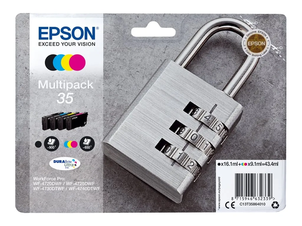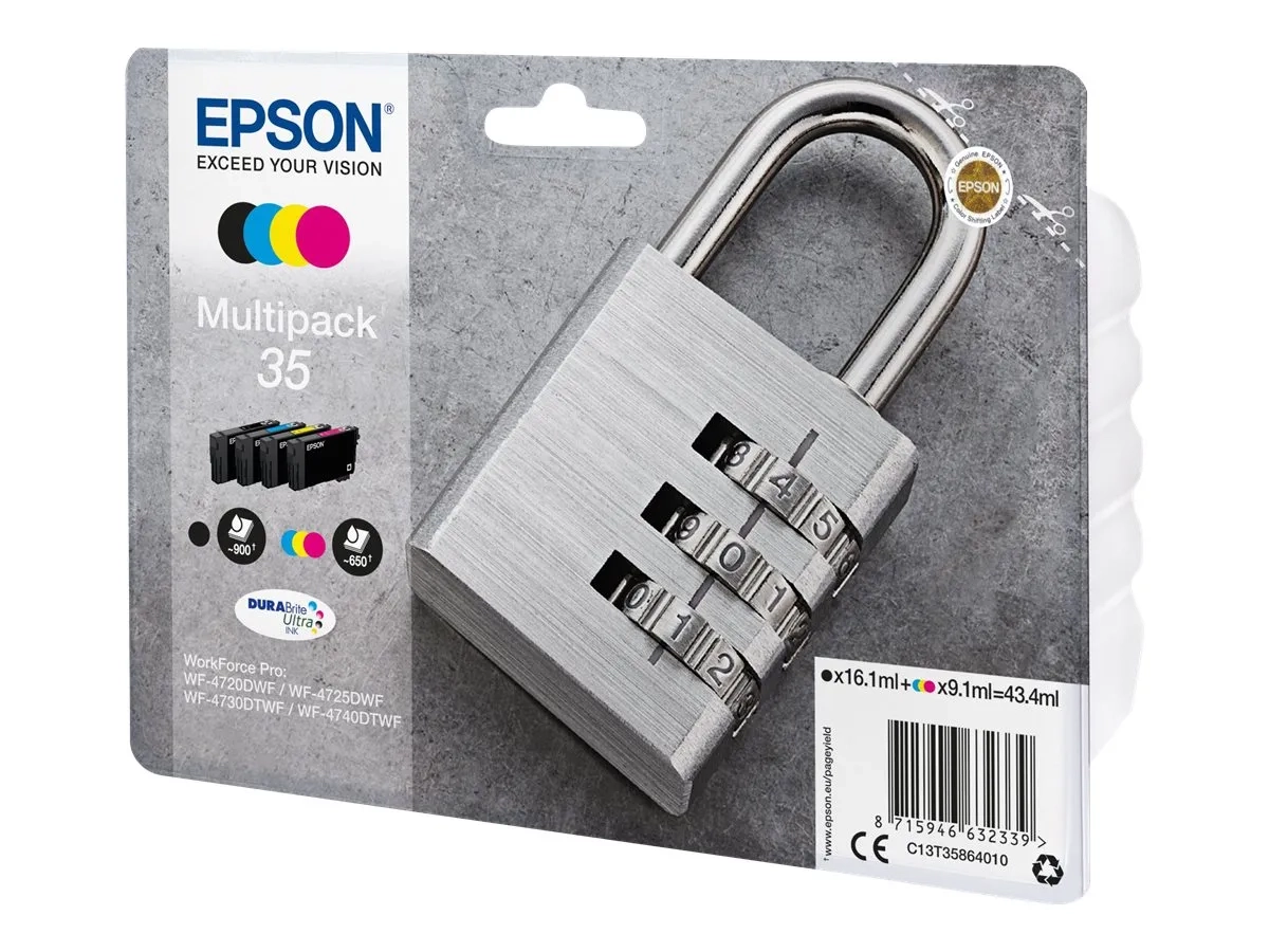 Epson 35 Multipack - Pack de 4 - noir, jaune, cyan, magenta - original - emballage coque avec alarme radioélectrique/ acoustique - cartouche d'encre - pour WorkForce Pro WF-4720, WF-4720DWF, WF-4725DWF, WF-4730, WF-4730DTWF, WF-4740, WF-4740DTWF