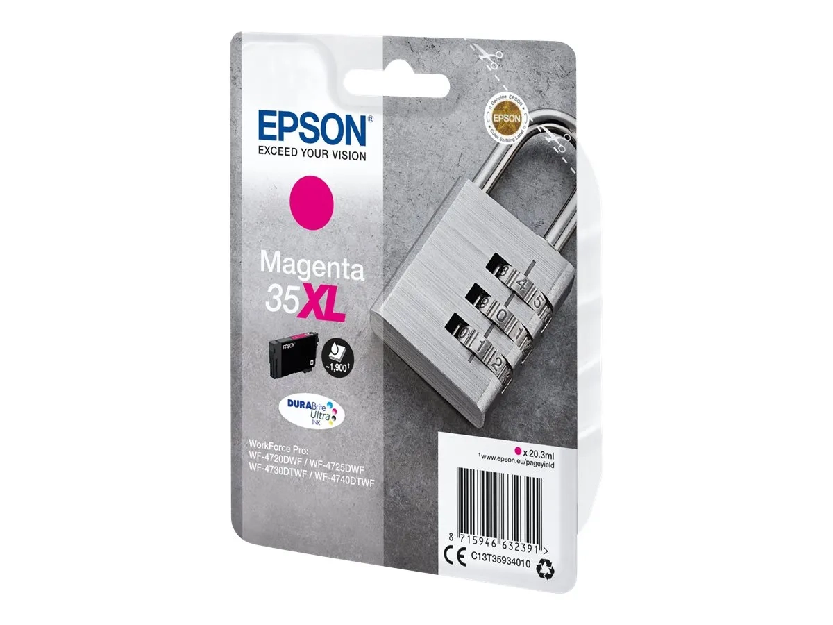 Epson 35XL - 20.3 ml - XL - magenta - original - emballage coque avec alarme radioélectrique/ acoustique - cartouche d'encre - pour WorkForce Pro WF-4720, WF-4720DWF, WF-4725DWF, WF-4730, WF-4730DTWF, WF-4740, WF-4740DTWF
